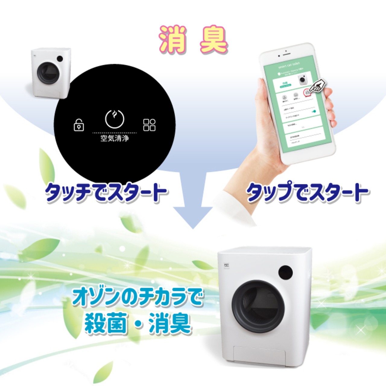 【安全構造設計】 多重の安全構造設計,高精度識別機能(内蔵熱センサー、光感センサー、赤外線センサー、体重識別センサー、ピンチ防止赤外線センサー、インテリジェント検出、リモートアラームペット保護システム、自動検出、安全ロック付き)安定性に優れます。 猫が挟まれる心配もなく、怪我をする恐れもありません。 【殺菌・消臭・自動クリーニングで清潔・快適生活】 最先端オゾン殺菌・消臭技術、内蔵オゾン発生装置。超強殺菌力、驚く!猫トイレ掃除が終わると、自動でオゾン殺菌消臭を行い、ウイルスや細菌、ダニなど死滅させます。 猫の病気、ヘルペスなどの伝染病の感染防止に有効。 【待望の操作機能搭載】 1.定時/自動掃除 2.定時/自動殺菌消臭 3.ワンクリック猫砂交換 4.安全ロック付き 5.おやすみモード(スタンバイ)モード設定 6.デバイス共有機能付き 【リアルタイム通知】 1.猫砂残量表示 2.ダストボックス満タンお知らせ 3.装置の異常お知らせ 4.トイレ使用状況通知 【健康データ記録】 猫ちゃんがトイレに入った回数、時間、滞在時間、体重などのデータが記録されています。 記録から猫の【健康状態】をチェックできます。 猫のトイレの使用状況に異常があった場合、アプリに自動で通知されます。 【8L大容量ダストボックス】 外出先安心!猫1匹あたりおよそ10日間まで継続して使用可能です。 サイズ:幅52×奥行54×高さ68cm
