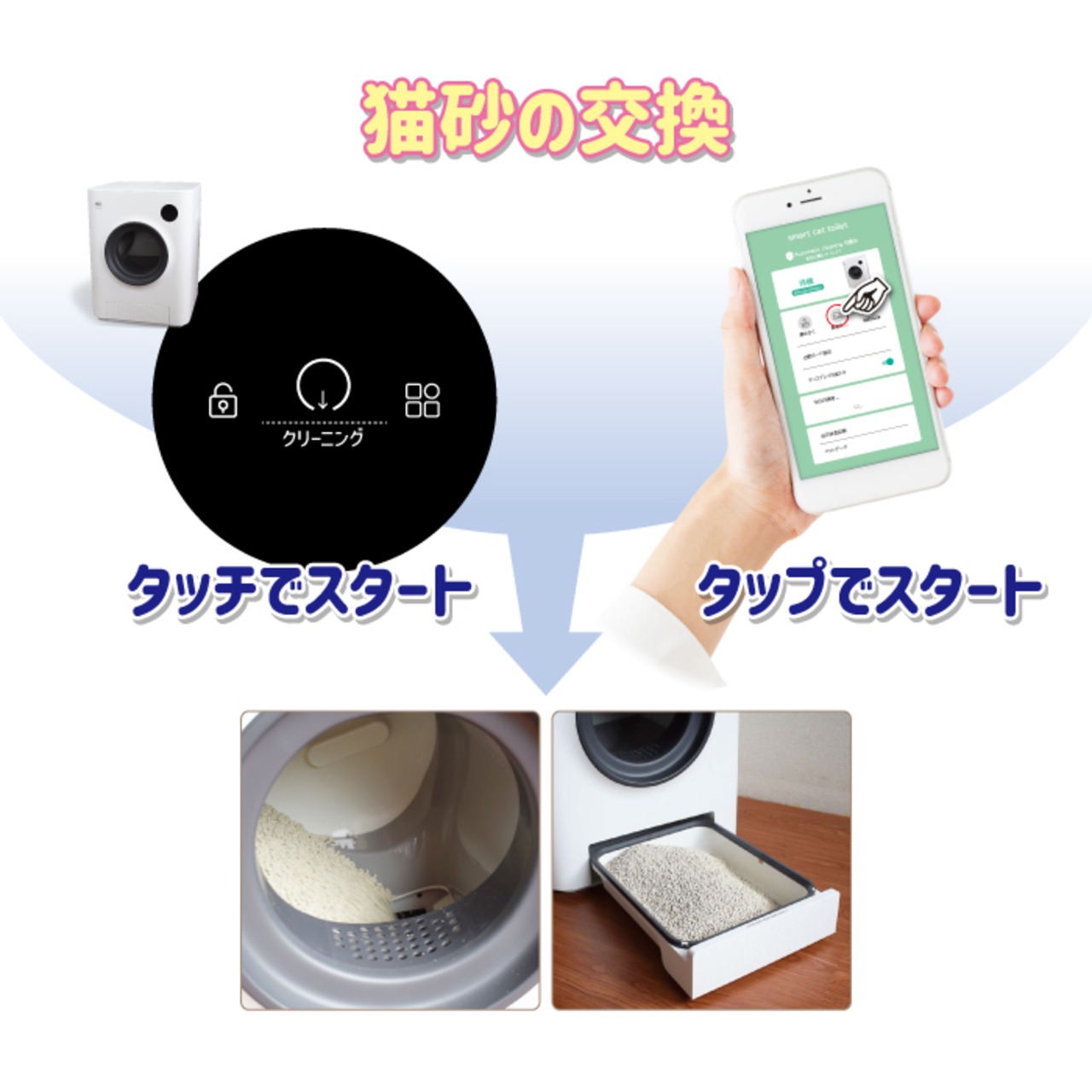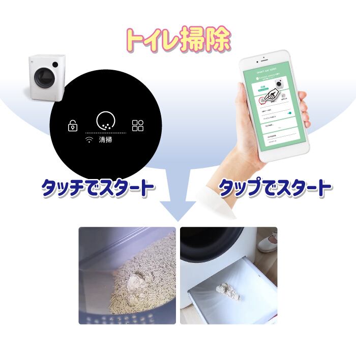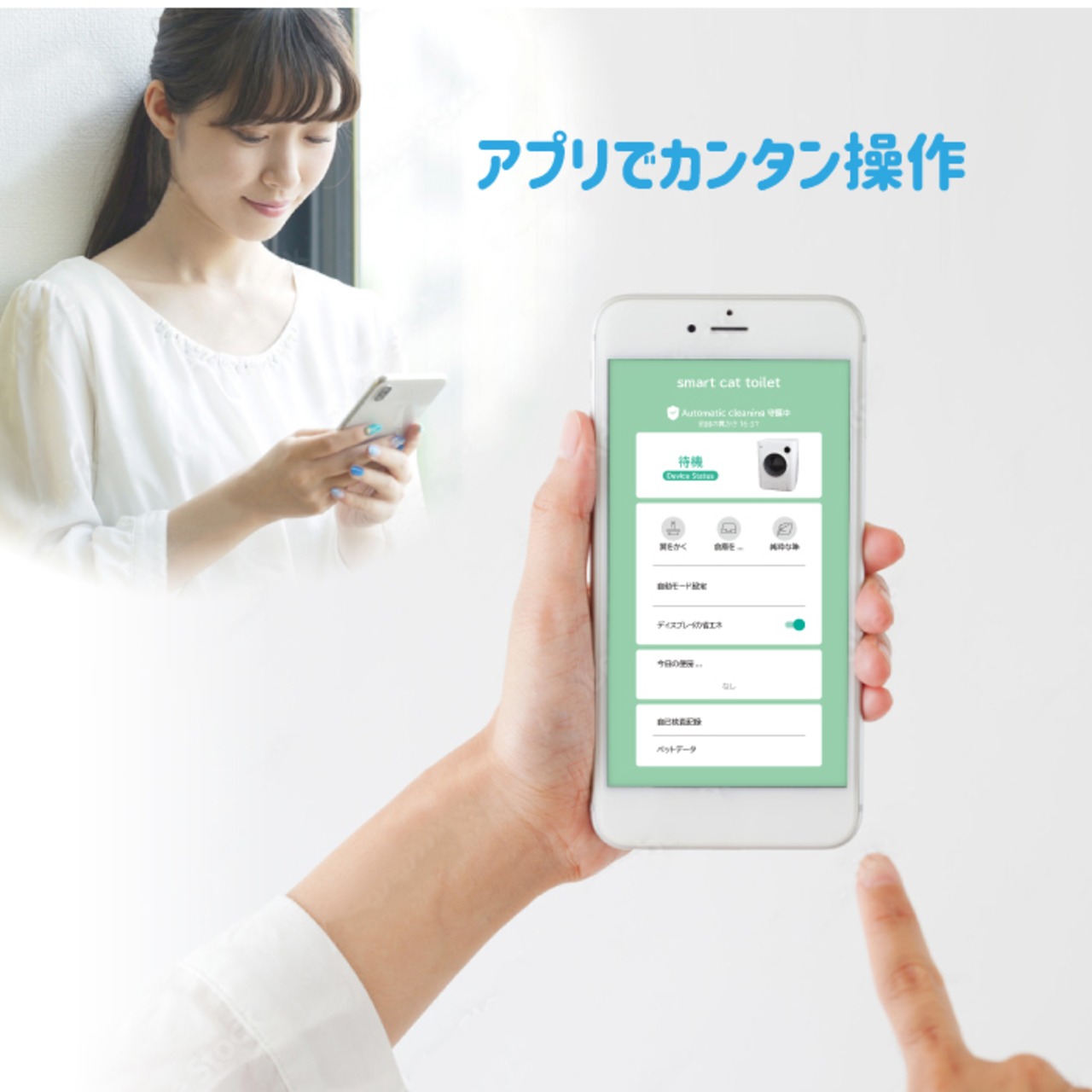 【待望の操作機能搭載】 1.定時/自動掃除 2.定時/自動殺菌消臭 3.ワンクリック猫砂交換 4.安全ロック付き 5.おやすみモード(スタンバイ)モード設定 6.デバイス共有機能付き 【リアルタイム通知】 1.猫砂残量表示 2.ダストボックス満タンお知らせ 3.装置の異常お知らせ 4.トイレ使用状況通知 【健康データ記録】 猫ちゃんがトイレに入った回数、時間、滞在時間、体重などのデータが記録されています。 記録から猫の【健康状態】をチェックできます。 猫のトイレの使用状況に異常があった場合、アプリに自動で通知されます。 【8L大容量ダストボックス】 外出先安心!猫1匹あたりおよそ10日間まで継続して使用可能です。 サイズ:幅52×奥行54×高さ68cm