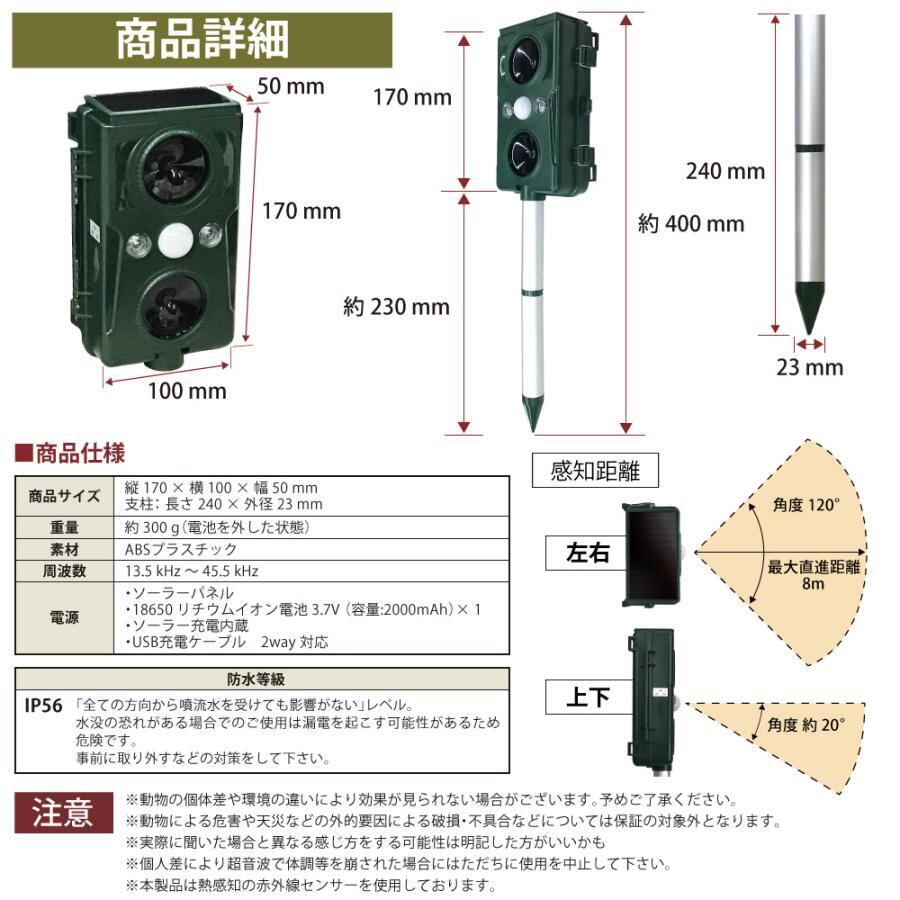 2スピーカー 動物撃退器 単品 忌避用品 猫よけ 害獣対策器 防獣 農作物 畑 防獣 騒音 野良