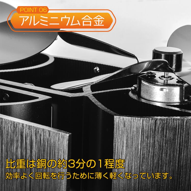 ストーブの熱で発電しモーターを回転させるため電源不要!