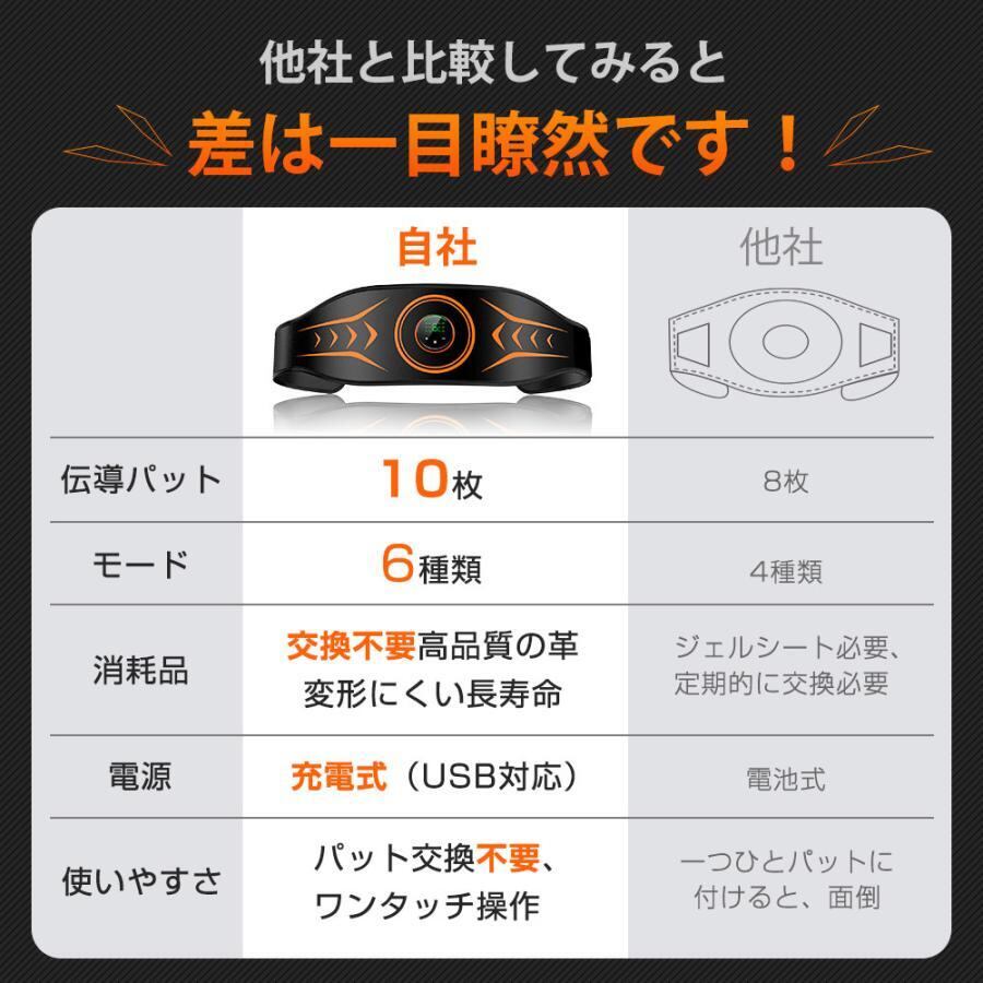 EMS 腹筋ベルト ジェル不要 効果 強力モード 筋トレ 液晶表示 USB充電式 6種類モード 9段階強度調整可能