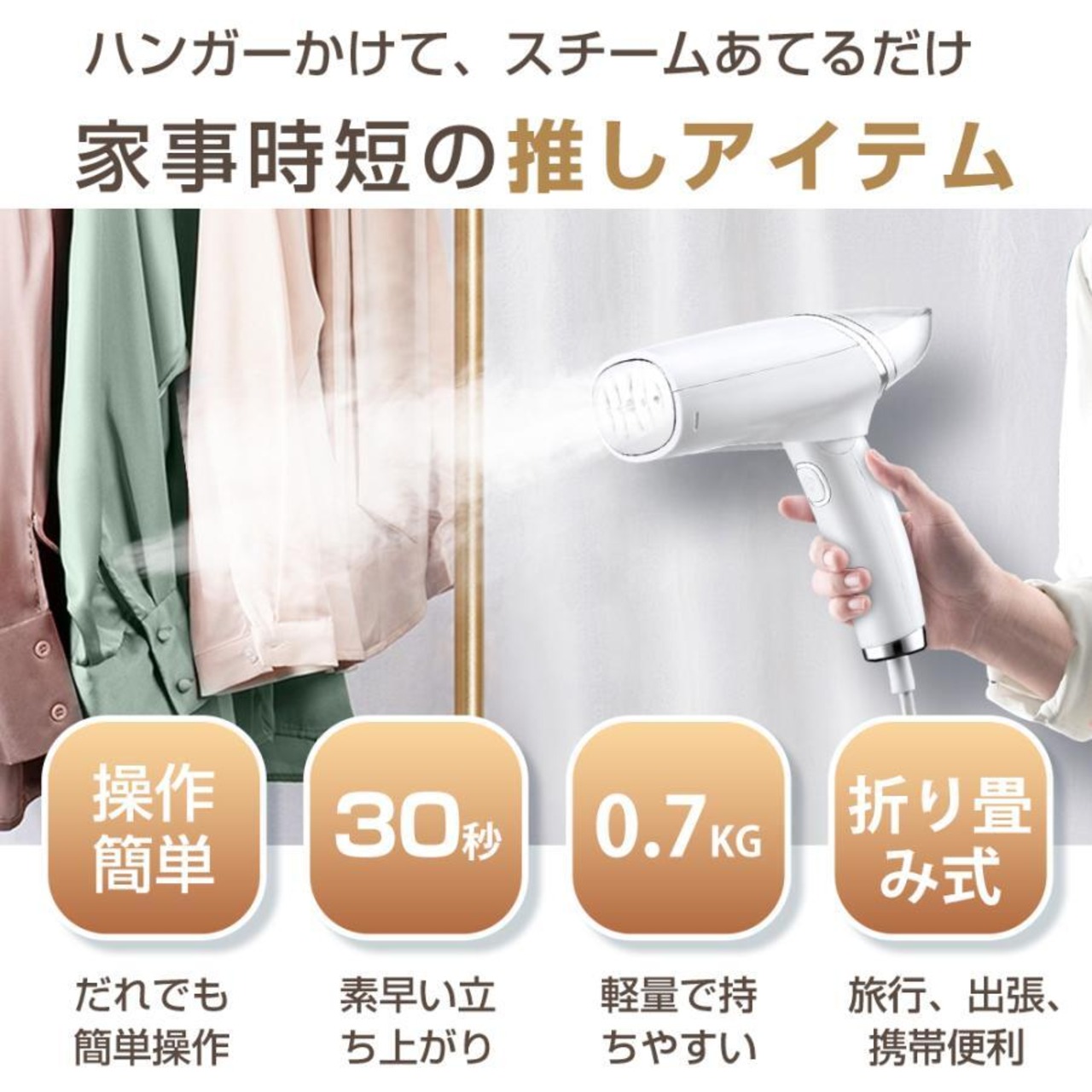 ハンディスチーマー スチームアイロン 衣類スチーマー スチーム 折り畳み シワ伸ばし 蒸気 コンパクト