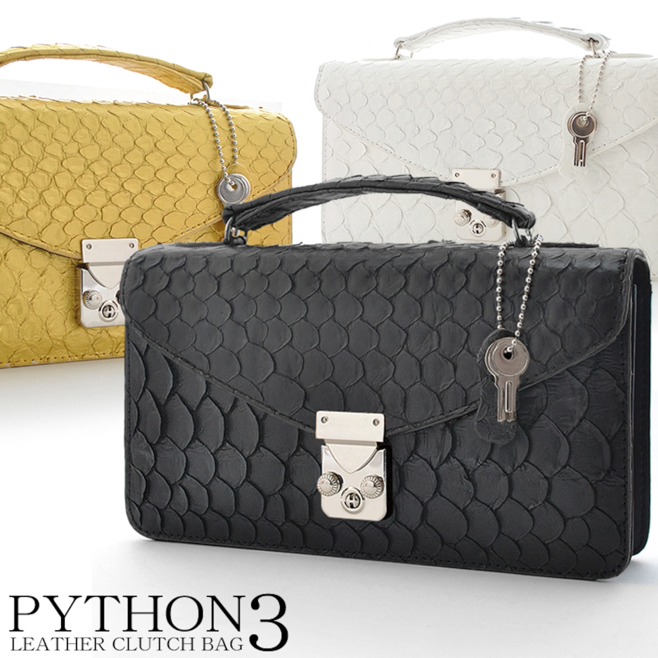 パイソンレザー(錦蛇皮)セカンドバッグ■No.2605■メンズポーチ■3色展開