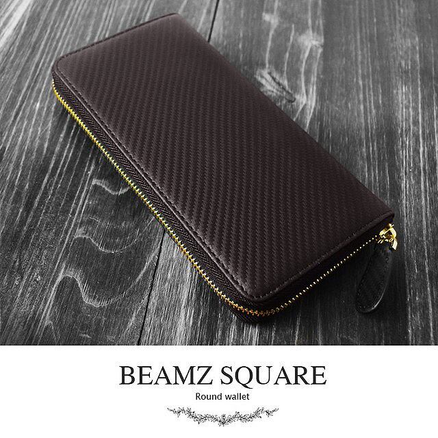 BEAMZSQUARE カーボンレザーラウンドファスナー長財布(ゴールドファスナーver.)新色ブラウン