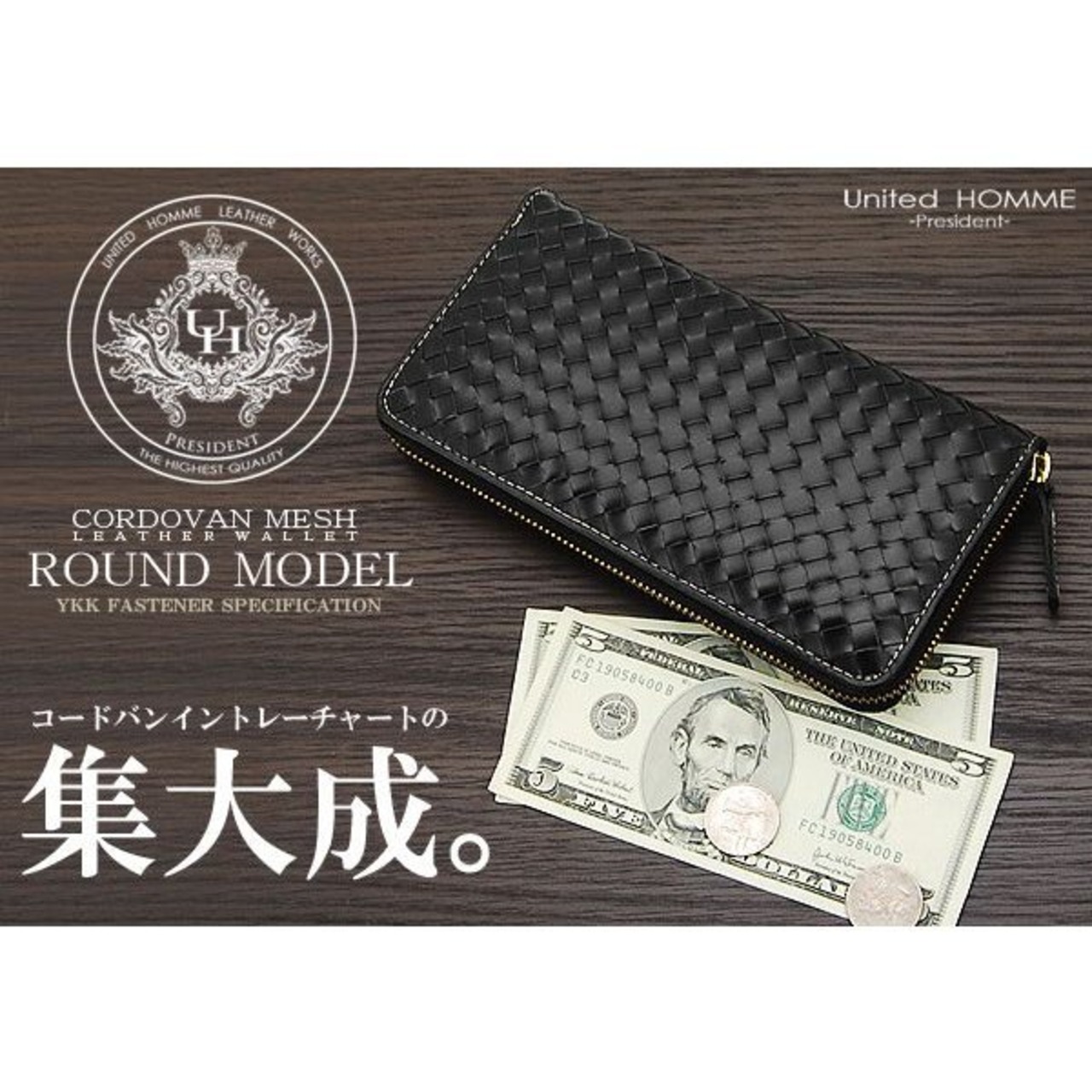 【united HOMME】高級馬革メッシュ×牛革ラウンドファスナー長財布