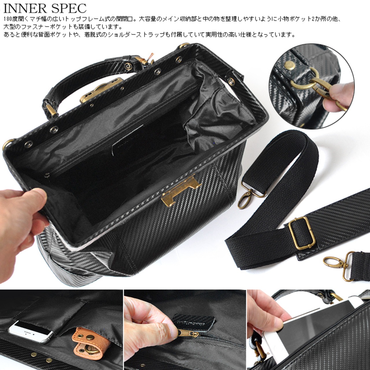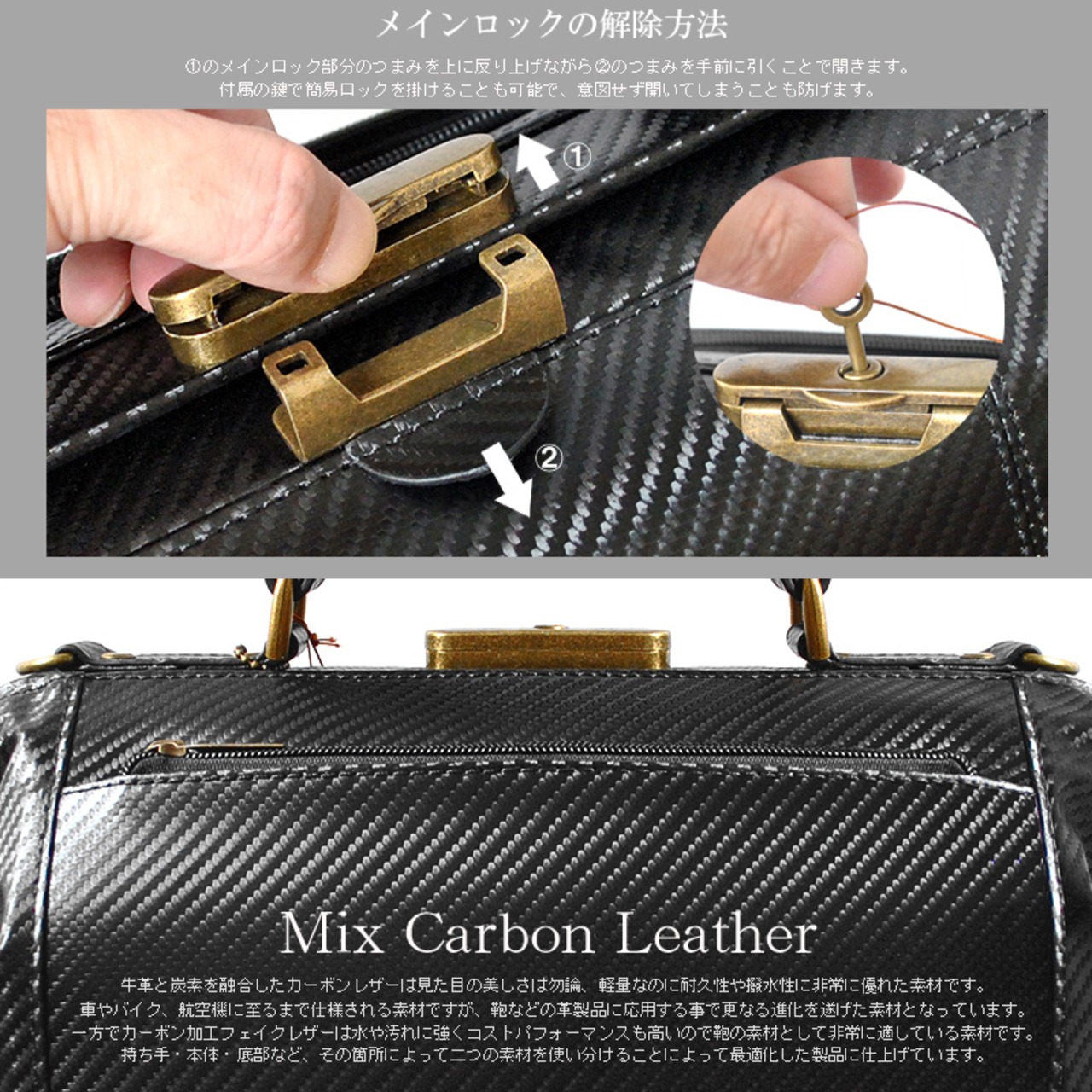 【素材】:持ち手、背面ポケット部分/カーボンレザー(牛革)