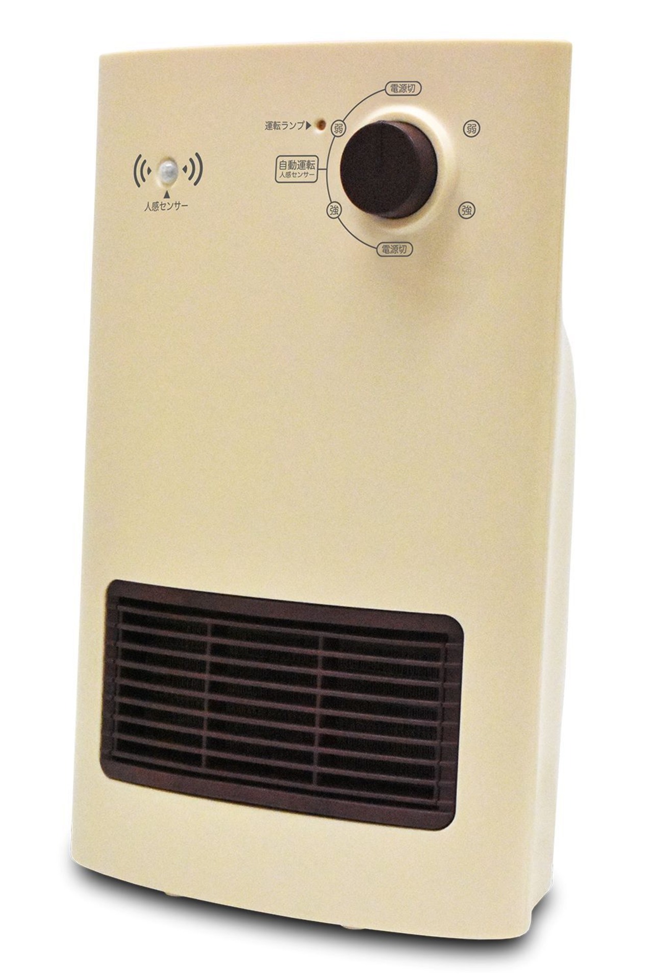 人の動きを感知して自動で電源をオン/オフする人感センサー搭載のセラミックヒーターです。