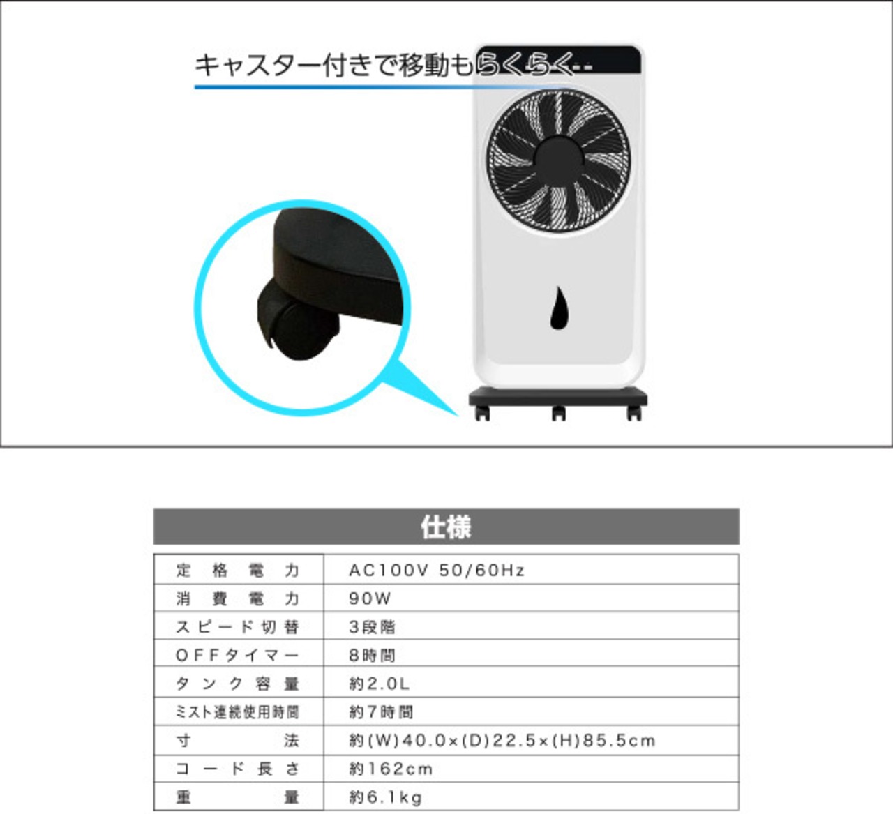 ミスト効果でひんやり心地よい風 サーキュレーター