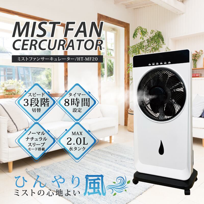 ミスト効果でひんやり心地よい風 サーキュレーター