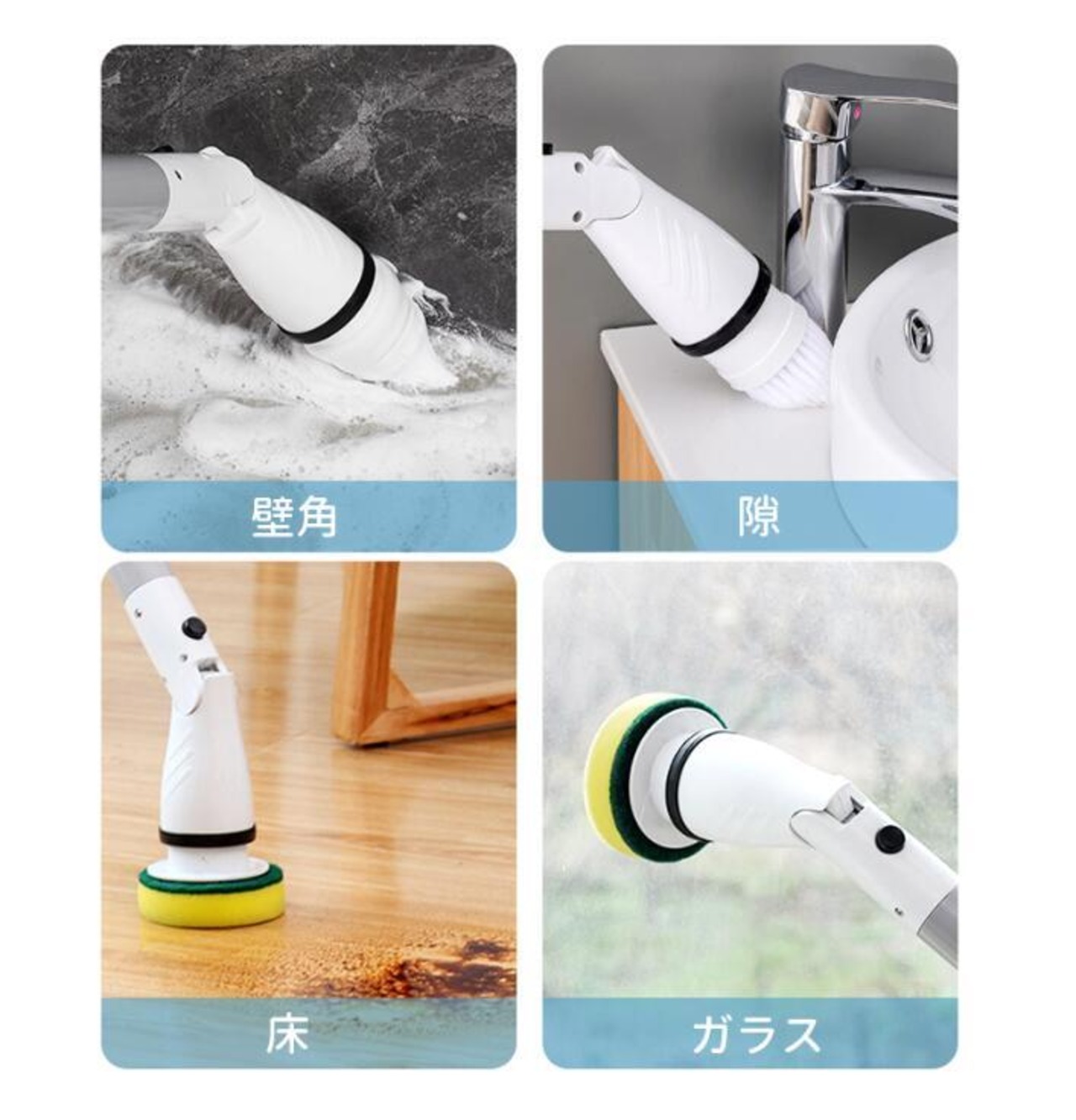 使い分けるブラシ4種類が付いております。掃除したい所によって、ブラシを自由に選択できます!