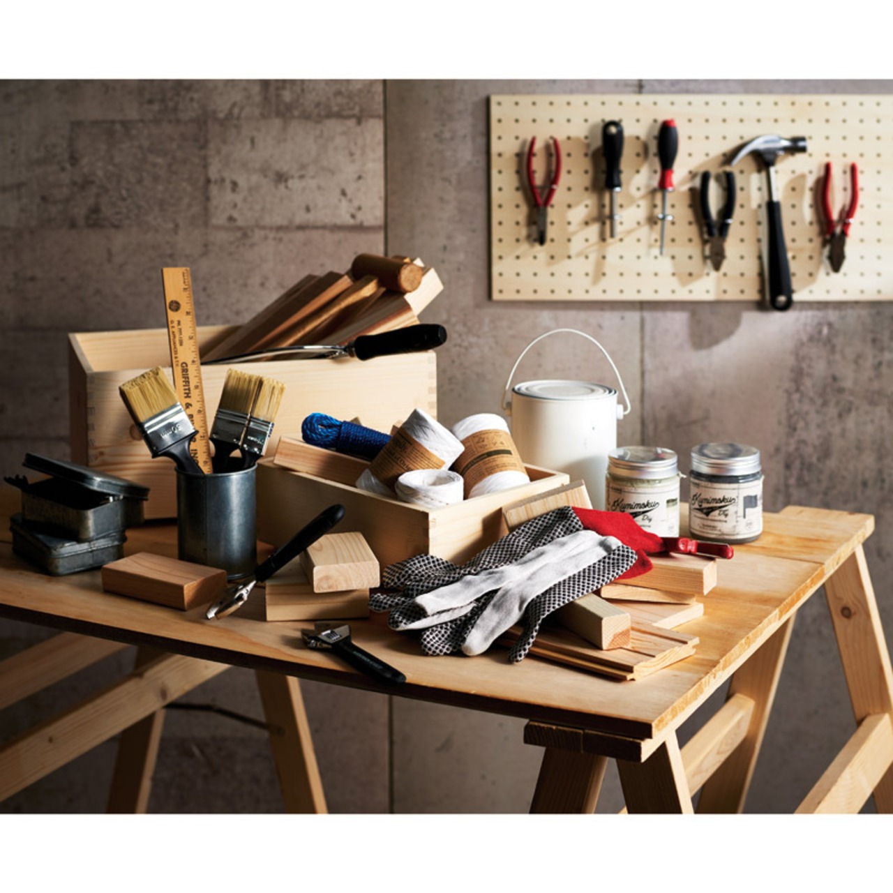 ●サイズ:29×20.5×5.5cm●セット内容:ビットドライバー、エクステンションバー、ソケット×4、ビット×5、ビットアダプター、精密ドライバー×4、六角レンチ×4、ハンマー、メジャー(3mストッパ付)、ラジオペンチ、ニッパー、モンキーレンチ、充電式電動ドライバー3.6V、電動ドライバー用ビット×12、電動ドライバー用ACアダプタ、家庭用万能のこぎり、乾電池式ヘッドライト、ストロング万能はさみ