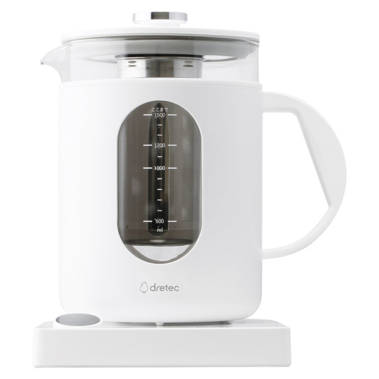 45℃~5℃刻みの温度設定と1分単位のタイマーでうまみを引き出す調理ポット。1台で何役も活躍(茹でる・煮る・蒸す・温める・沸かす・消毒・保温など)。大人数のお茶出しにも対応できる1.5Lの大容量。中身を見ながら水分量を目盛ではかれる。広口だから材料投入もラクラク。コードの長さ約1.2m。消費電力800W。