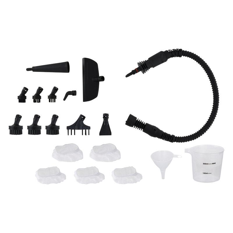 ●セット内容:本体(11.5×26.5×20.7cm)・サッシ用ブラシ・リトルスクレーパー・ストレートノズル・延長ホース・アングルノズル・窓用アタッチメント・ジョウゴ・メジャーカップ×各1、布カバー×5、ブラシ・ブラシ大×各3