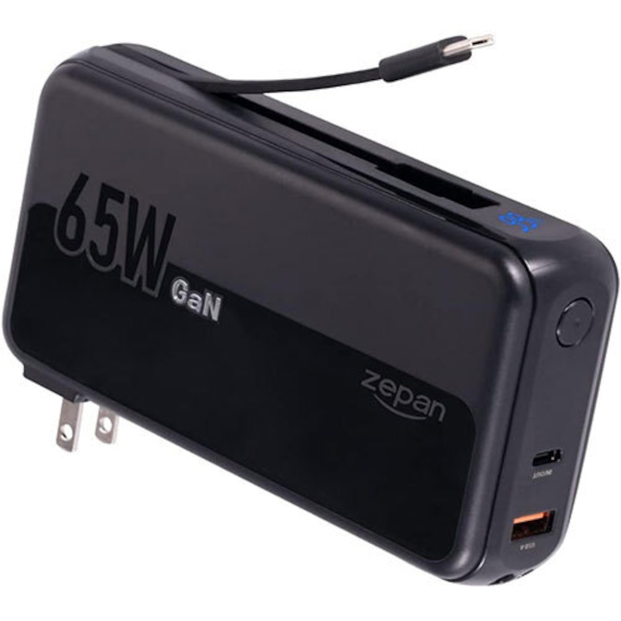 充電器&モバイルバッテリー2 in 1仕様! お家でも出先でも大活躍GaN(窒化ガリウム)技術採用! 65Wのハイパワーを実現大容量14400mAhバッテリー! リモートワークや緊急時の電源確保にも対応「zepan PD65」は、コンパクトで軽量にも関わらず、GaN(窒化ガリウム)技術を採用することで65Wの高出力を実現した画期的なモバイルバッテリーです。14400mAhの大容量で、スマホ、ノートPCからゲーム機、ドローンまで余裕で急速充電することができます。リモートワークや緊急時、移動の多い方にも、電源確保を心配している方には見逃すことのできない逸品です!・充電器・バッテリー・ケーブル、3つの機能がこれひとつに・GaN(窒化ガリウム)技術を採用で65Wの高出力を実現・14400mAhの大容量バッテリー・2ポート、格納可能プラグ、着脱可能なケーブル、最大2台同時充電可能・幅広い互換性、多数のデバイスに対応本体にはType-CとUSB-A 2ポートが搭載されており、充電器としてはもちろん、緊急時のモバイルバッテリーとしても頼もしい存在です。お家では充電器として使用。65Wの出力でノートパソコンを1.5時間でフル充電できるので、テレワークの心強い味方になってくれます。また、 外出先ではモバイルバッテリーとして大活躍。スマホの充電が切れそうなときや、突然の停電でも慌てる必要がありません。充電器モード:AC電源に接続して使用します。まず、デバイスへの給電が優先され、完了後は「PD65」内蔵バッテリーの充電に切り替わります。モバイルバッテリーモード:14400mAh大容量バッテリーから、各デバイスへの給電が行われます。電源の無い環境での充電に。
