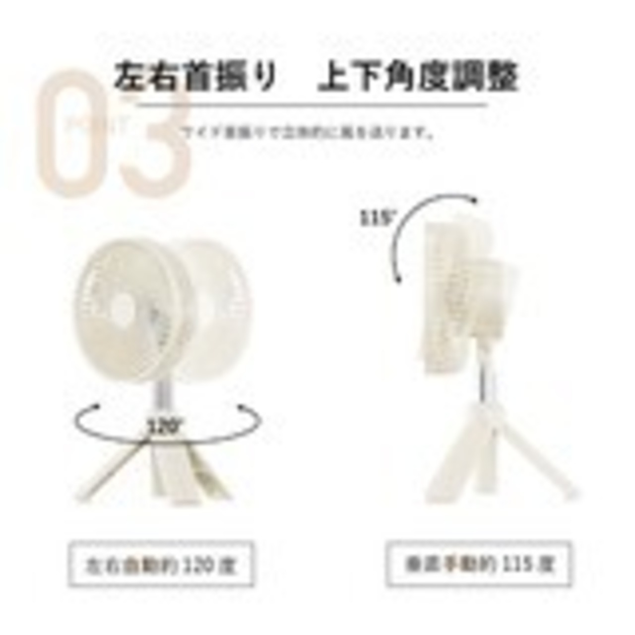 左右自動首振り約120度・上下手動角度調整約115度で立体的に風を送ります。