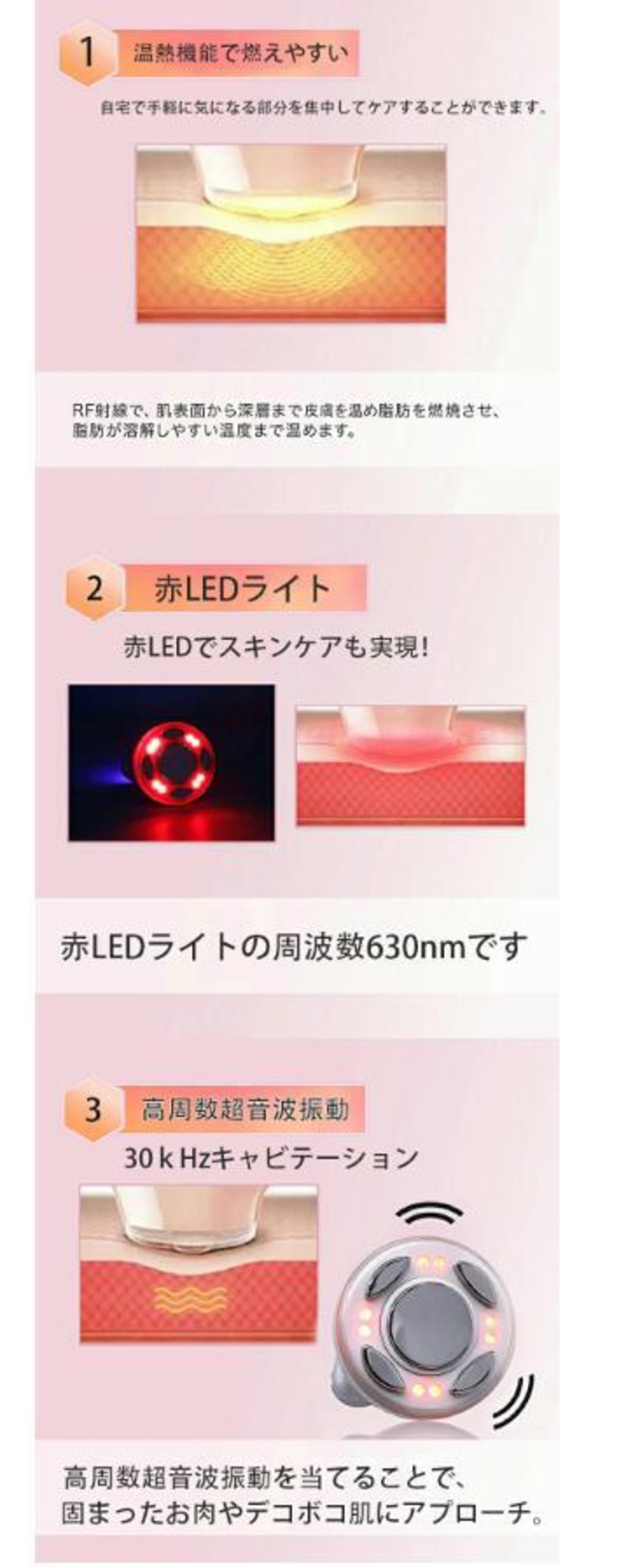 キャビテーションは痩身エステサロンでも取り入れられている新技術。先端の技術を、自宅でじっくり行って確実なメリハリボディを手に入れることができるのです、お肌を振動させるトリートメントです。凝り固まって落ちにくいお肉やデコボコ肌にアプローチします。微細な超音波振動で、落としにくい頑固なお肉やデコボコ肌に効率よくアタックするエステで人気の引き締めケア。短時間で結果が出やすいからとにかく人気。