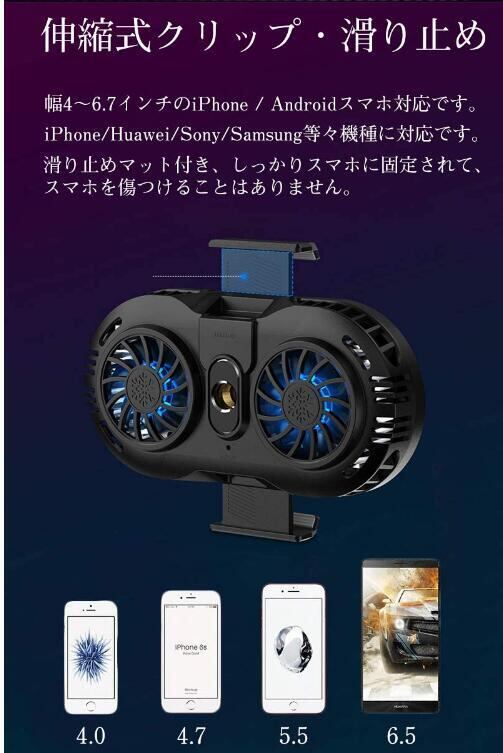 背面クリップは滑り止めマット付き、しっかりスマホに固定されて、携帯電話を傷つけることはありません。 幅4~6.5インチのiPhone / Androidスマートフォン用のすべてのモデルに適用可能発熱を気にせずにさまざまなゲームをプレイできます。 iPhone/Huawei/Sony/Samsung等々機種に対応です。