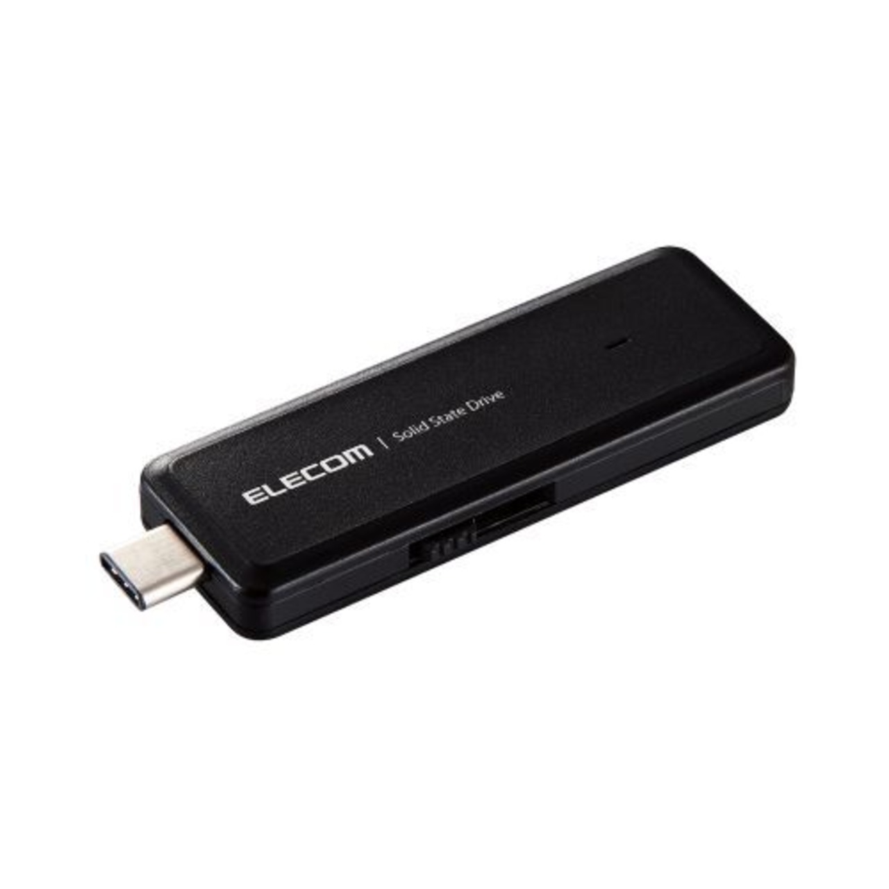■USB Type-C(TM)スライドコネクターを採用したUSB 10Gbps(USB3.2(Gen2))外付けポータブルSSDです。■出荷時にexFAT形式でフォーマット済みのため、USB Type-C(TM)ポートを搭載したMacBookやiPadなどでも、ケーブルやアダプターを別途購入することなく、接続するだけですぐに使用可能です。■※USB Type-C and USB-C are trademarks of USB Implementers Forum■重さ約12g、幅約64.0mm×奥行約22.5mm×高さ約8.0mmというコンパクトさで、持ち運びや収納にも便利なUSBメモリサイズです。■読み込み最大1000MBs、書き込み最大980MBsの高速データ転送を実現しています。■※USB 10Gbps(USB3.2(Gen2))でご使用になるには、機器側がUSB 10Gbps(USB3.2(Gen2))に対応している必要があります。■PlayStation(R) 5に接続し、PlayStation(R) 4のゲームデータを外付けSSDに保存することで、ゲームの起動時間やセーブデータのロード時間が短縮され、より快適なゲームプレイが可能です。■PlayStation(R) 5に接続し、PlayStation(R) 5のゲームデータを外付けSSDに保存することで、本体ストレージの空き容量を確保できます。■※PlayStation(R) 5のゲームデータを外付けSSDから起動することはできません。■保証期間を「1年間」としていますので、安心してご利用いただけます。■衝撃や振動によって破損しやすいディスク駆動部品がないため、高い耐衝撃性能と耐振動性能を兼ね備えています。■モーターなどの駆動部品がないため、書き込み時の騒音もなく、HDDに比べて消費電力を大幅に抑えられます。■外部電源を必要としないUSBバスパワー駆動なので、USBポートに接続するだけですぐに使えます。■お好みのストラップを装着できるストラップホールを装備しています。■※本製品にストラップは付属していません。■エレコムホームページからダウンロードすることで、パスワード自動認