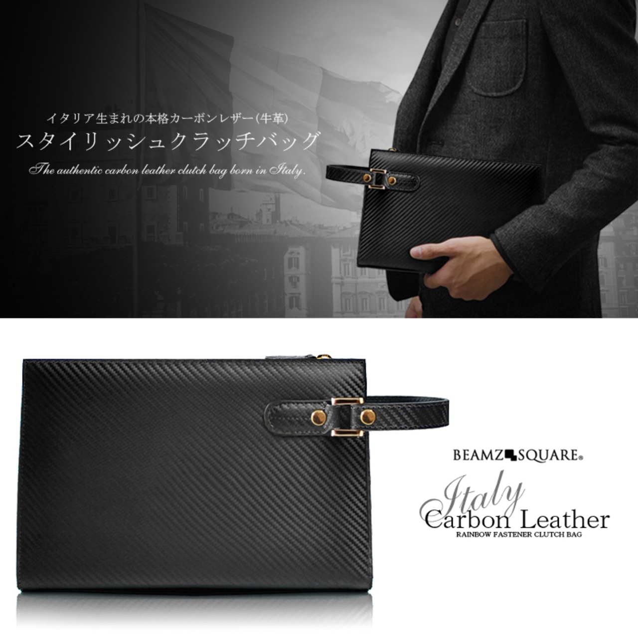 BEAMZSQUARE イタリアンカーボンレザー(牛革)セカンドクラッチバッグ