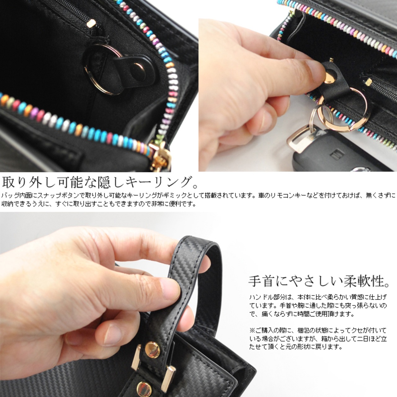 さらに、脱着可能なキーリング付きで、鍵の開け閉めが非常に楽に行えます。