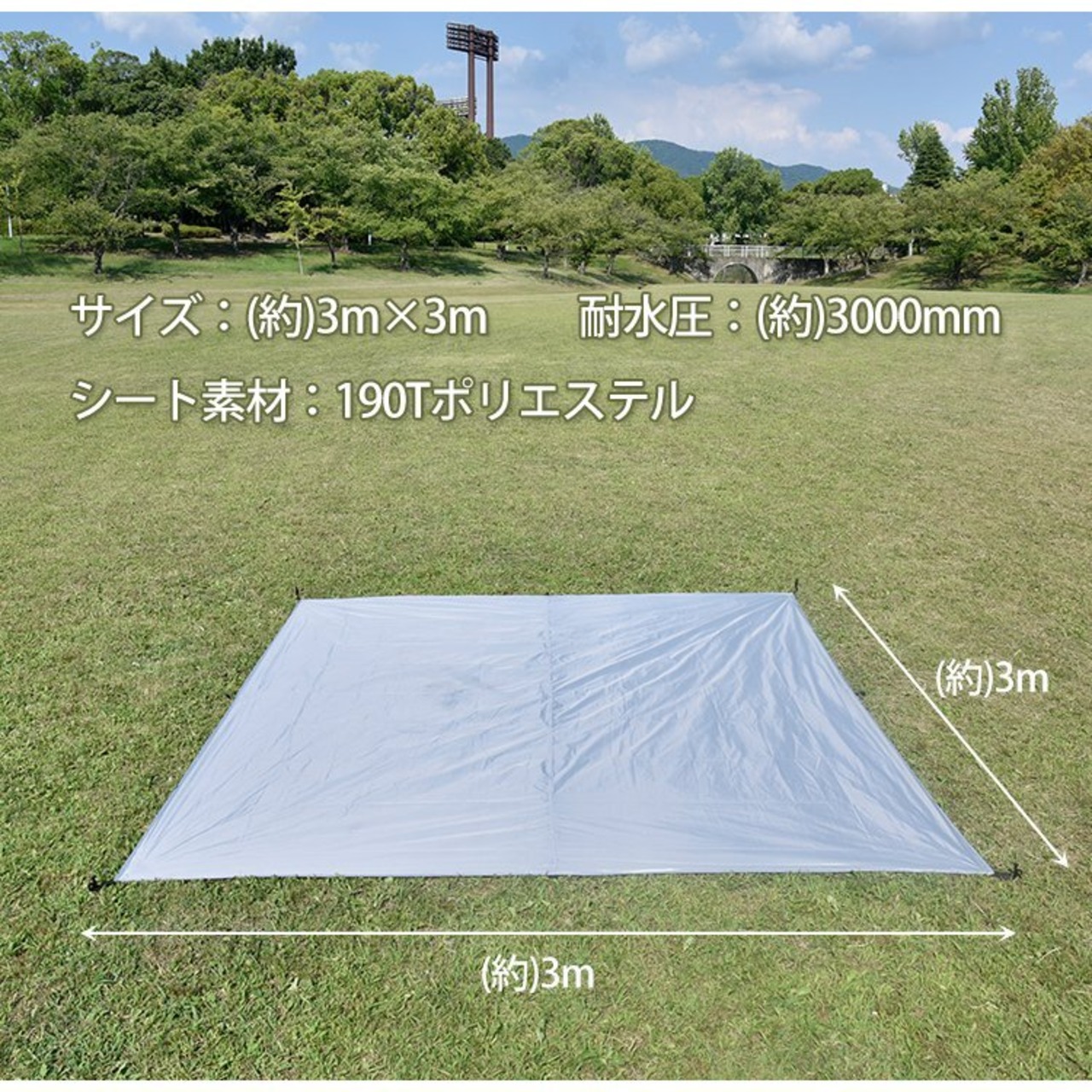 タープ 3m×3m 天幕 日よけ 防水 テント スクエアタープ 300×300cm 耐水圧3000mm