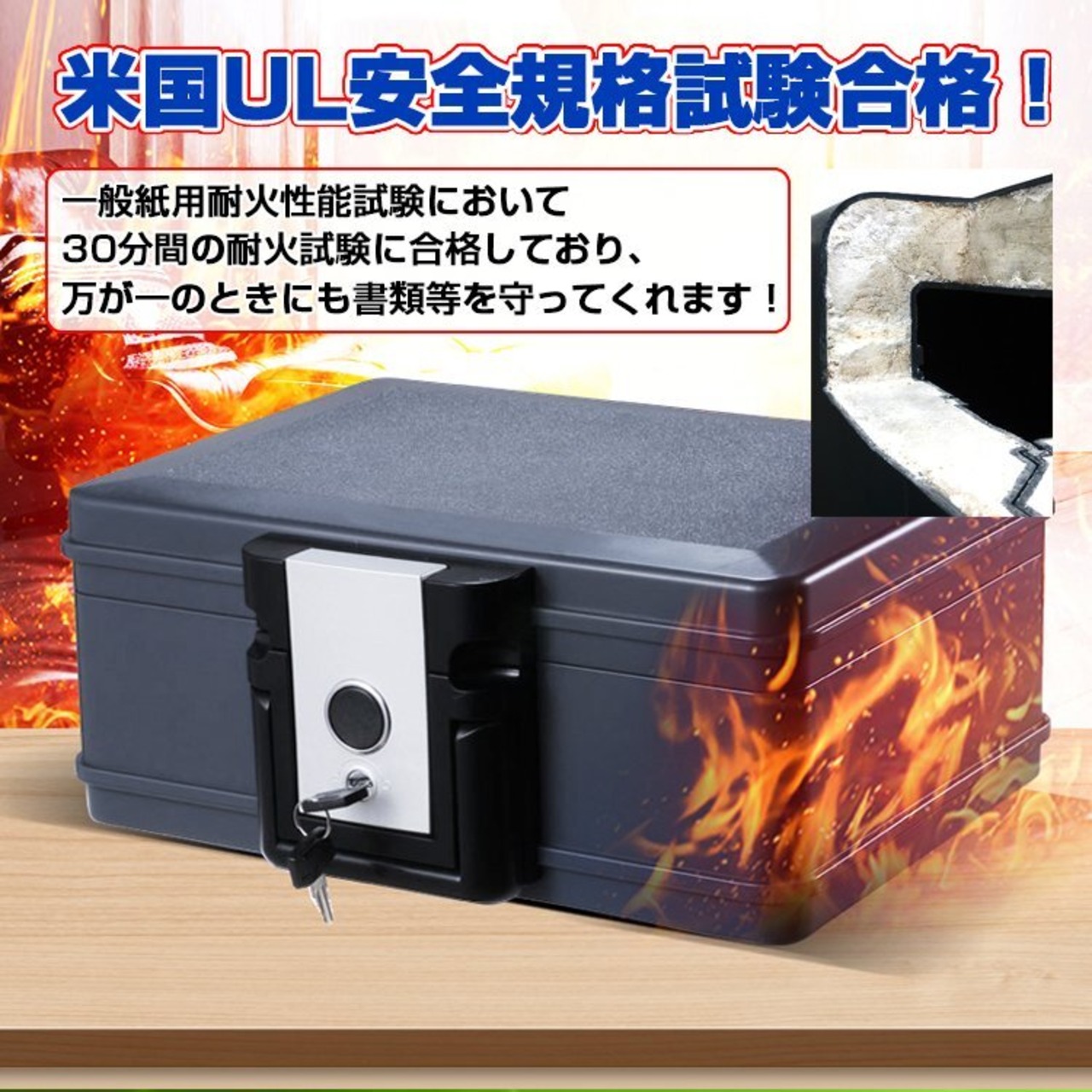 手提げ金庫 防火 耐火 UL認証 貴重品 書類 パスポート 金庫 鍵付き アタッシュケース プロテクターバッグ
