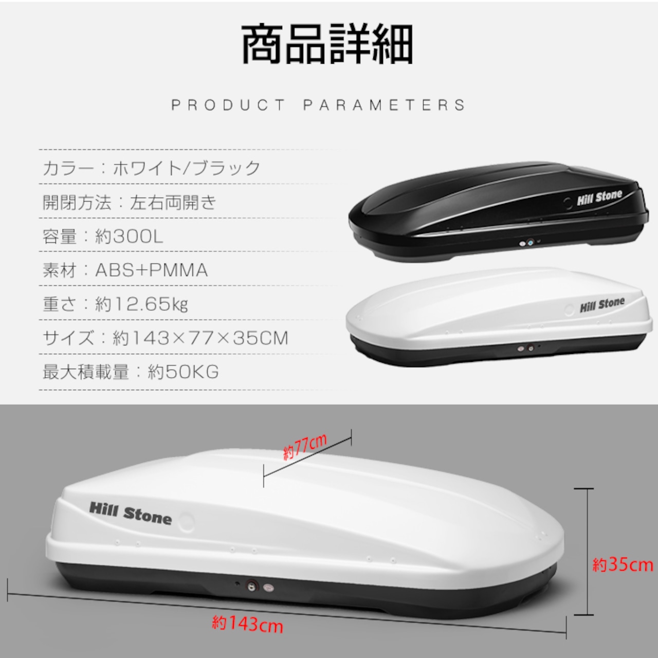 ルーフボックス 300L デュアルサイドオープン ロック付き 盗難防止 左右開き