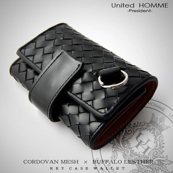 【united HOMME】高級馬革メッシュ×バッファローレザー(水牛革)ウォレットキーケース