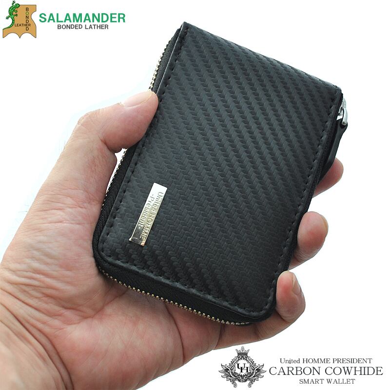 【United HOMME PRESIDENT】カーボンレザー×サラマンダーボンデッドレザースマート財布