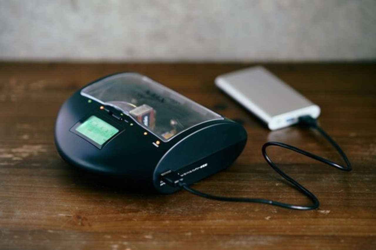 ●使い方は簡単! 使用済みの電池を本体に入れるだけで充電を安全に制御します。充電中・充電完了・電池残量も一目でわかる液晶ディスプレイ搭載。