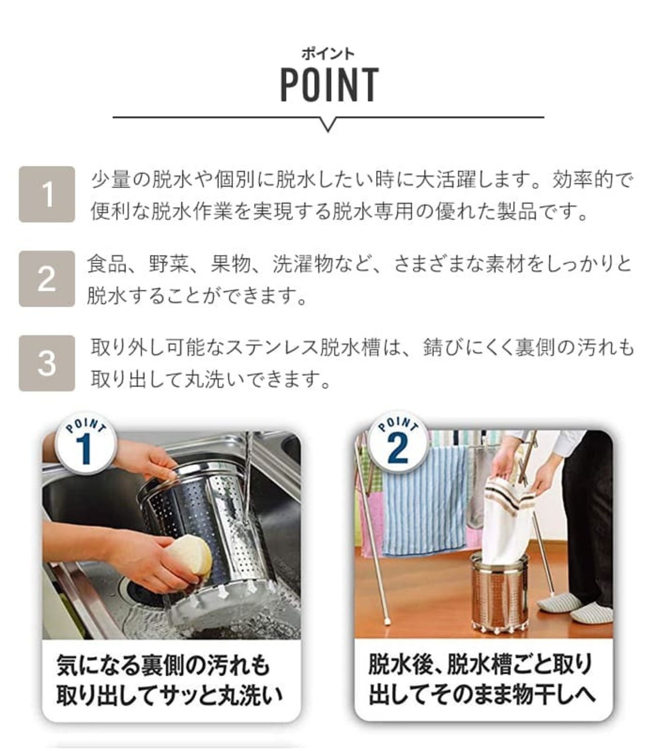 小型脱水機は、忙しい現代の生活に合わせて、手間をかけずに効率的な脱水を実現する優れたアイテムです。食品のおいしさや衣類の手入れを大切にしたい方には欠かせないアイテムとなるでしょう。お手軽な脱水作業を手に入れて、より便利な生活をお楽しみください。