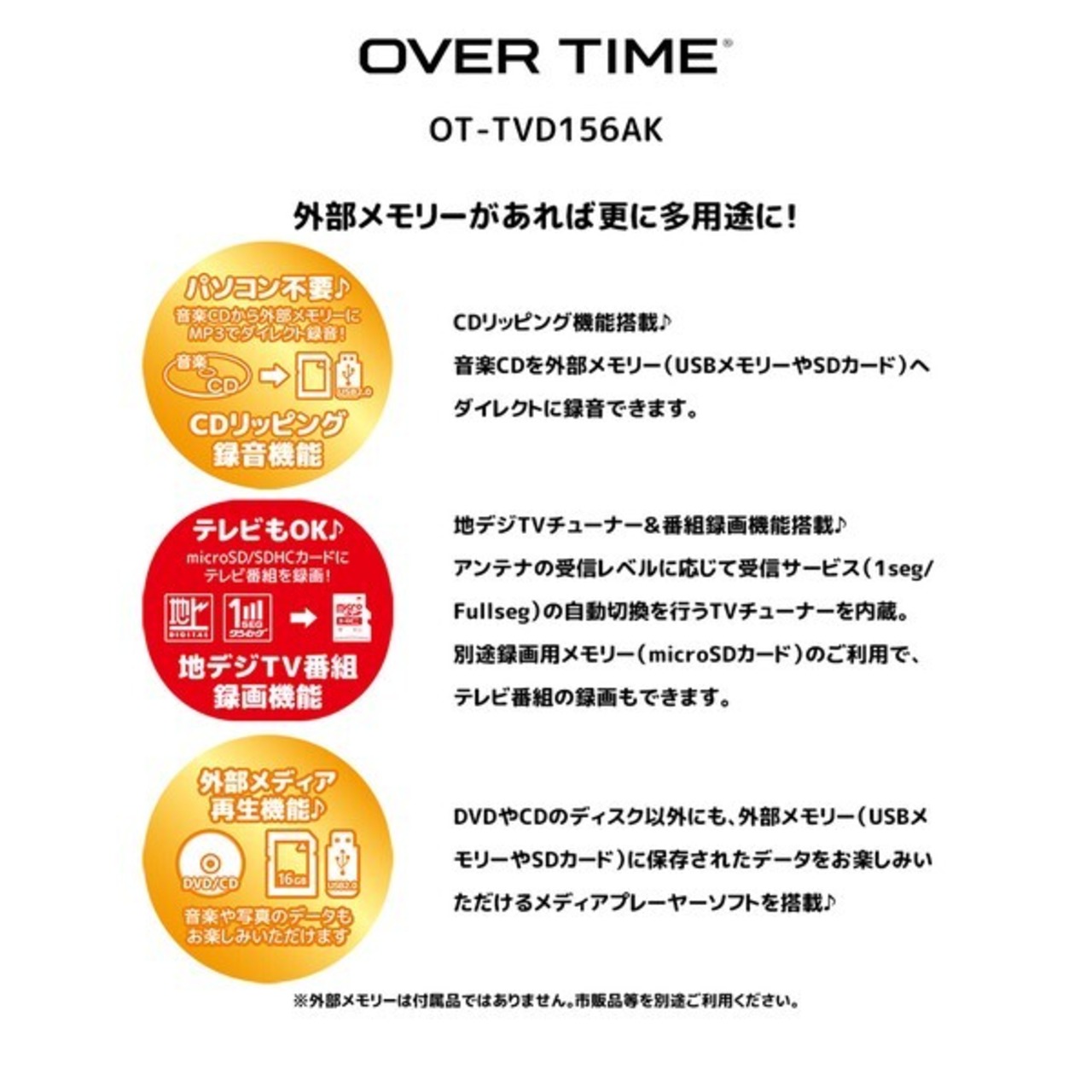 ※外部メモリーは付属品ではありません。市販品等を別途ご利用ください。