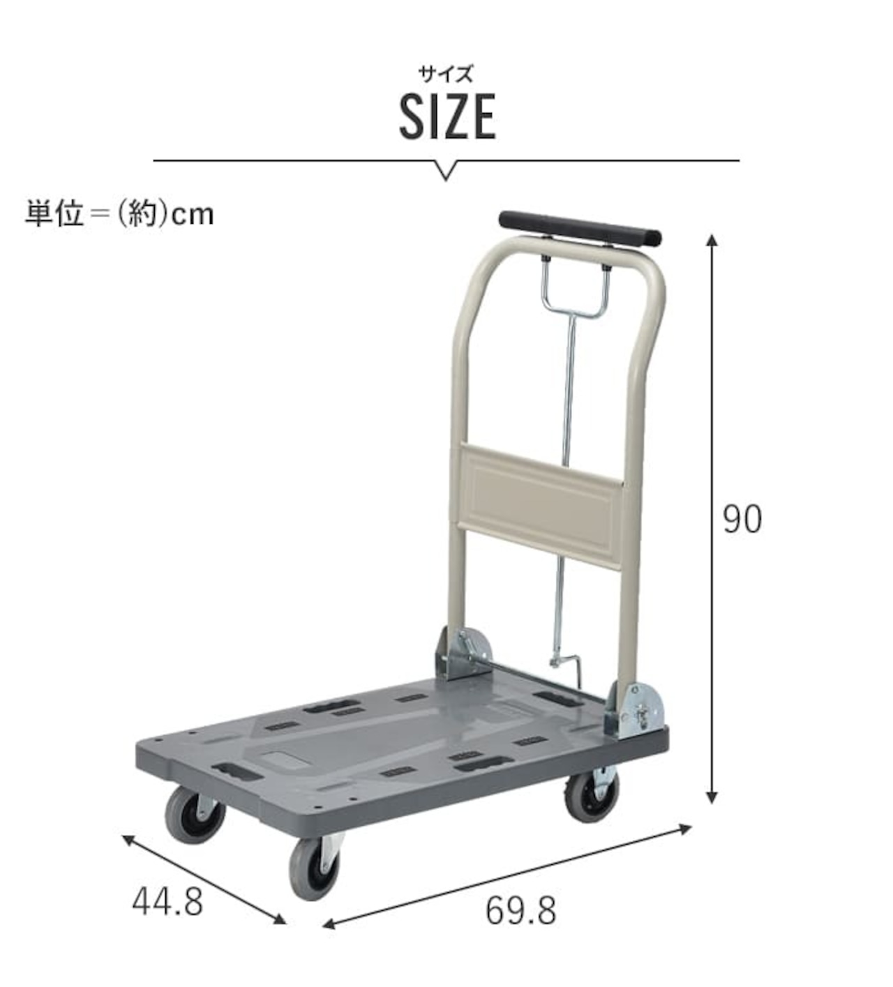 約幅44.8×長さ69.8×高さ90cm、重量約9kg。