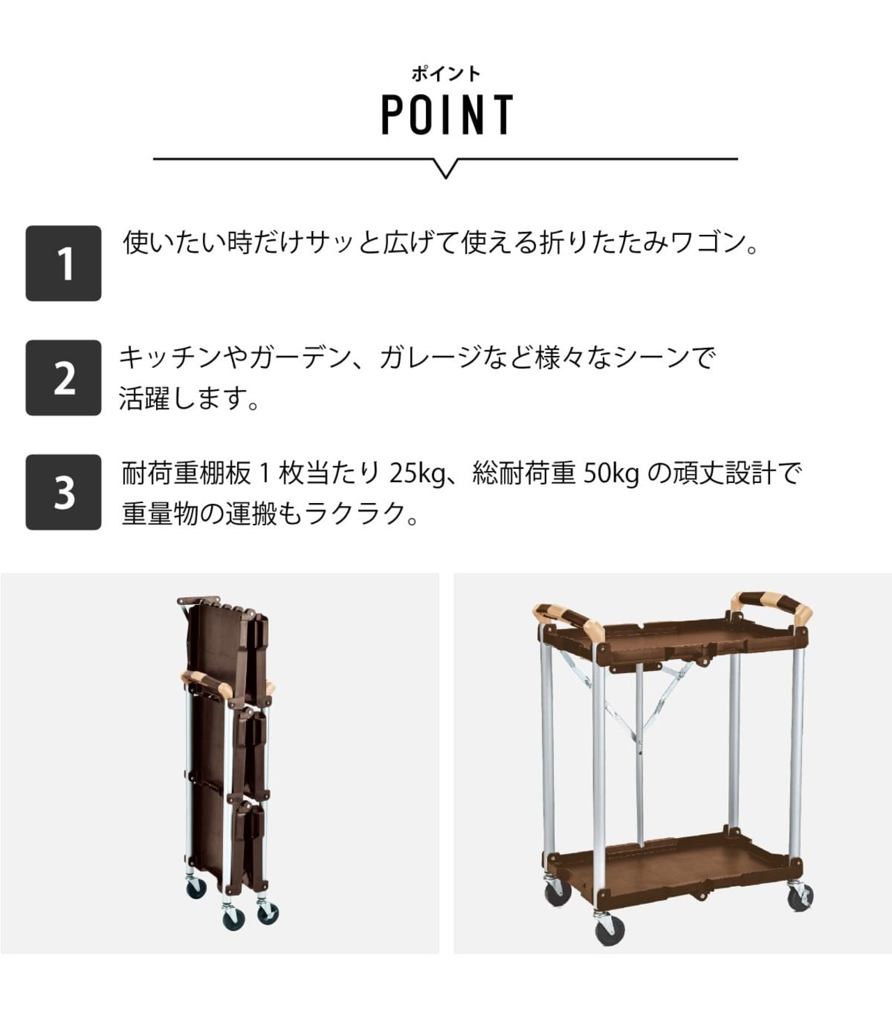 シリーズでは、好みや用途に応じて「折りたたみワゴン2段」と「折りたたみワゴン3段」の2種類を取り揃えております。