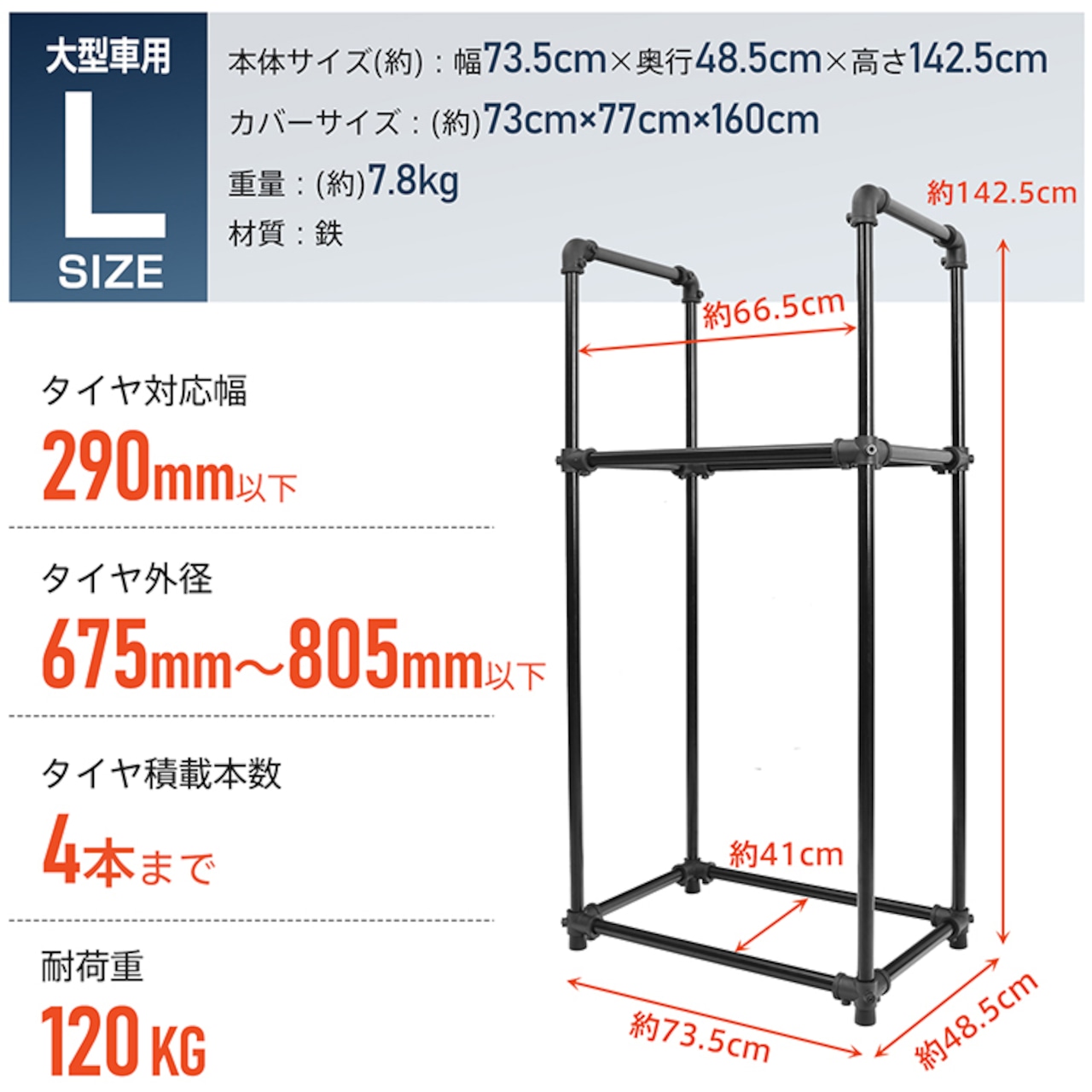 タイヤラック カバー付き タイヤ 収納 保管 タイヤラックカバー 軽自動車 普通自動車 大型車
