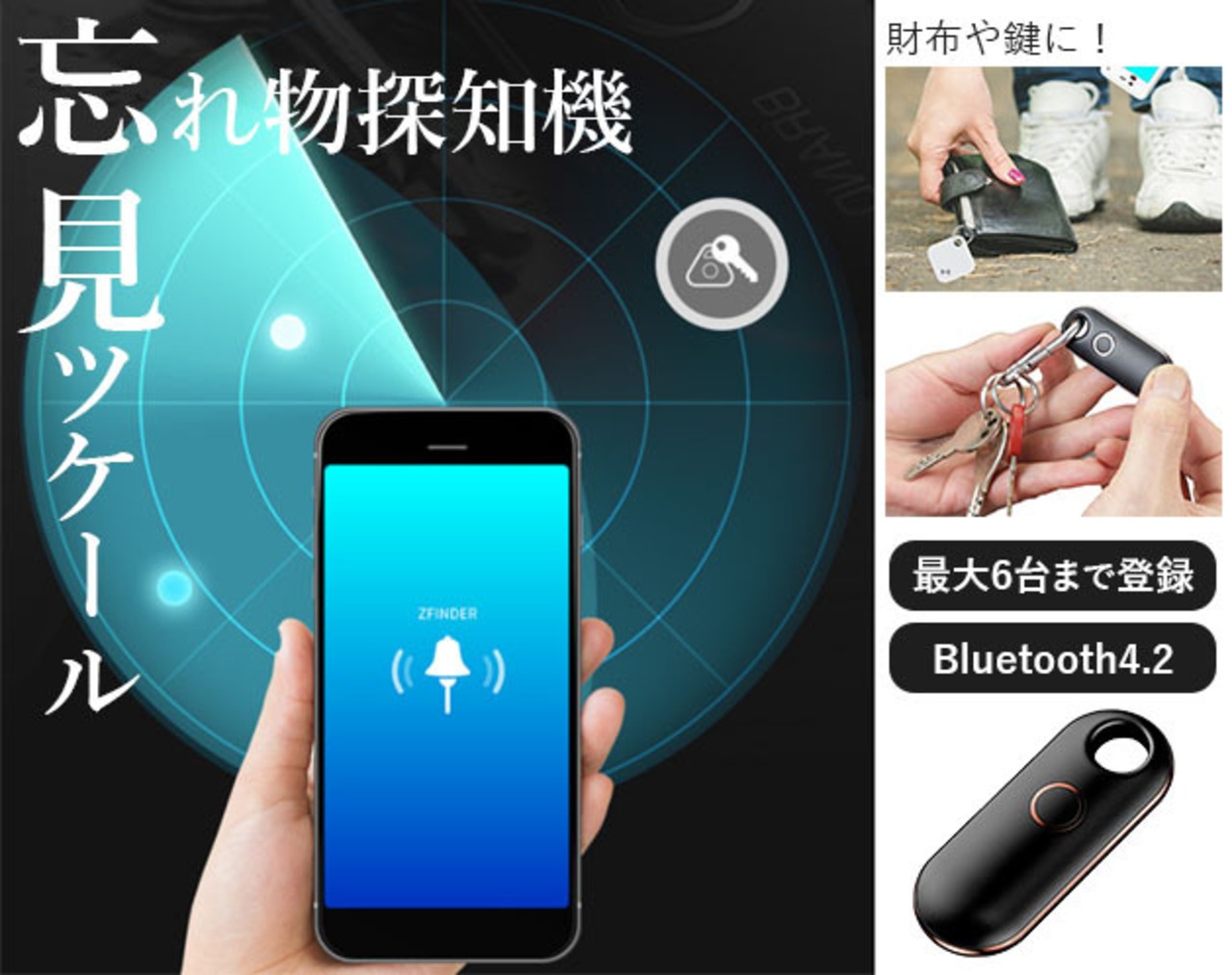 自宅のカギ、携帯電話、財布など大切なものに付けるだけ!