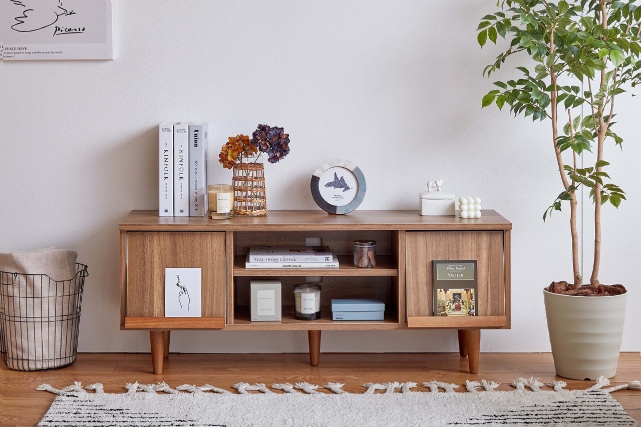 フラップ扉で生活感を隠して、おしゃれに魅せるコンパクトサイズの『Tonny』 フラップ扉テレビ台
