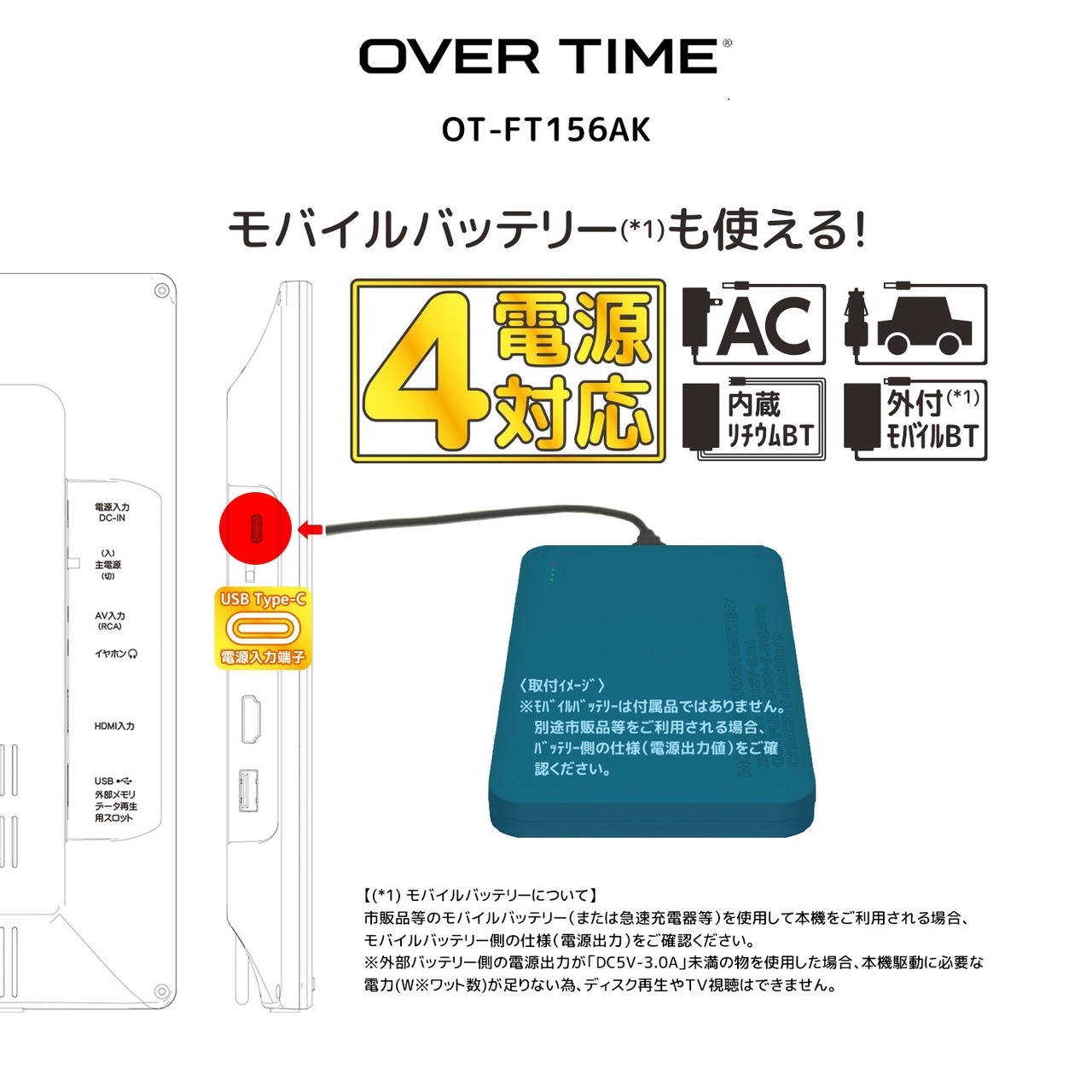 OVER TIME 15.6インチ液晶 ポータブル地デジテレビ