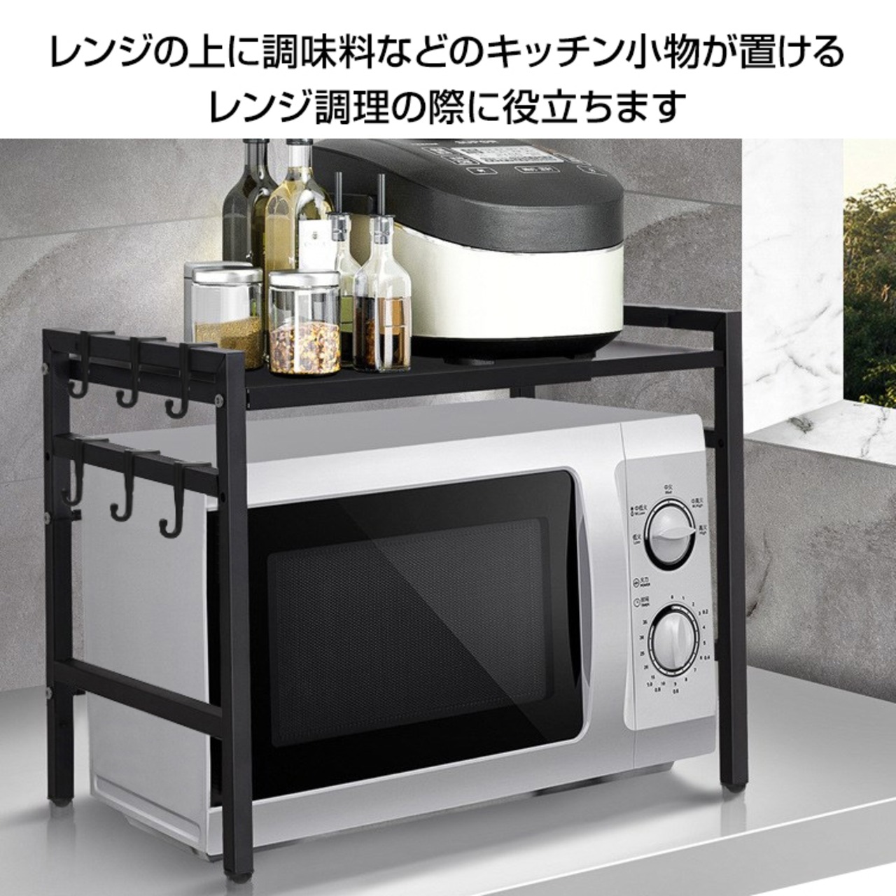 レンジ上ラック おしゃれ 伸縮 黒 レンジ棚 キッチン収納 幅40-54cm レンジ台 キッチンラック 電子レンジ