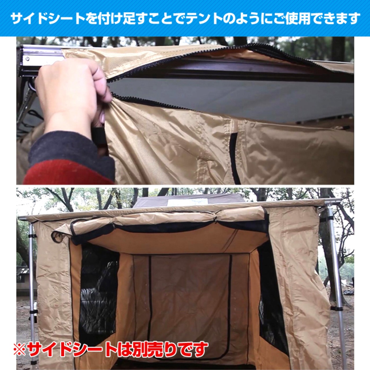 ■気軽に野外でキャンプなどを楽しむことができるカーサイドオーニングです