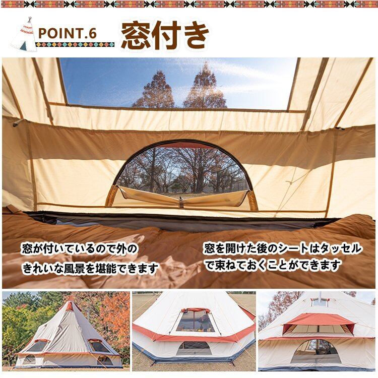 キャンプ テント ワンポール ポリコットン グランピング 400cm 6人用 ベルテント ティピー ゲル インディアン 防水 防虫 アウトドア レジャー インテリア