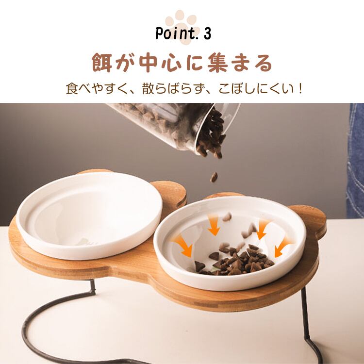 ペット食器台 ダブル フードボウル 食べやすい 肉球 陶器 磁器 犬 猫 ネコボウル お皿 餌入れ