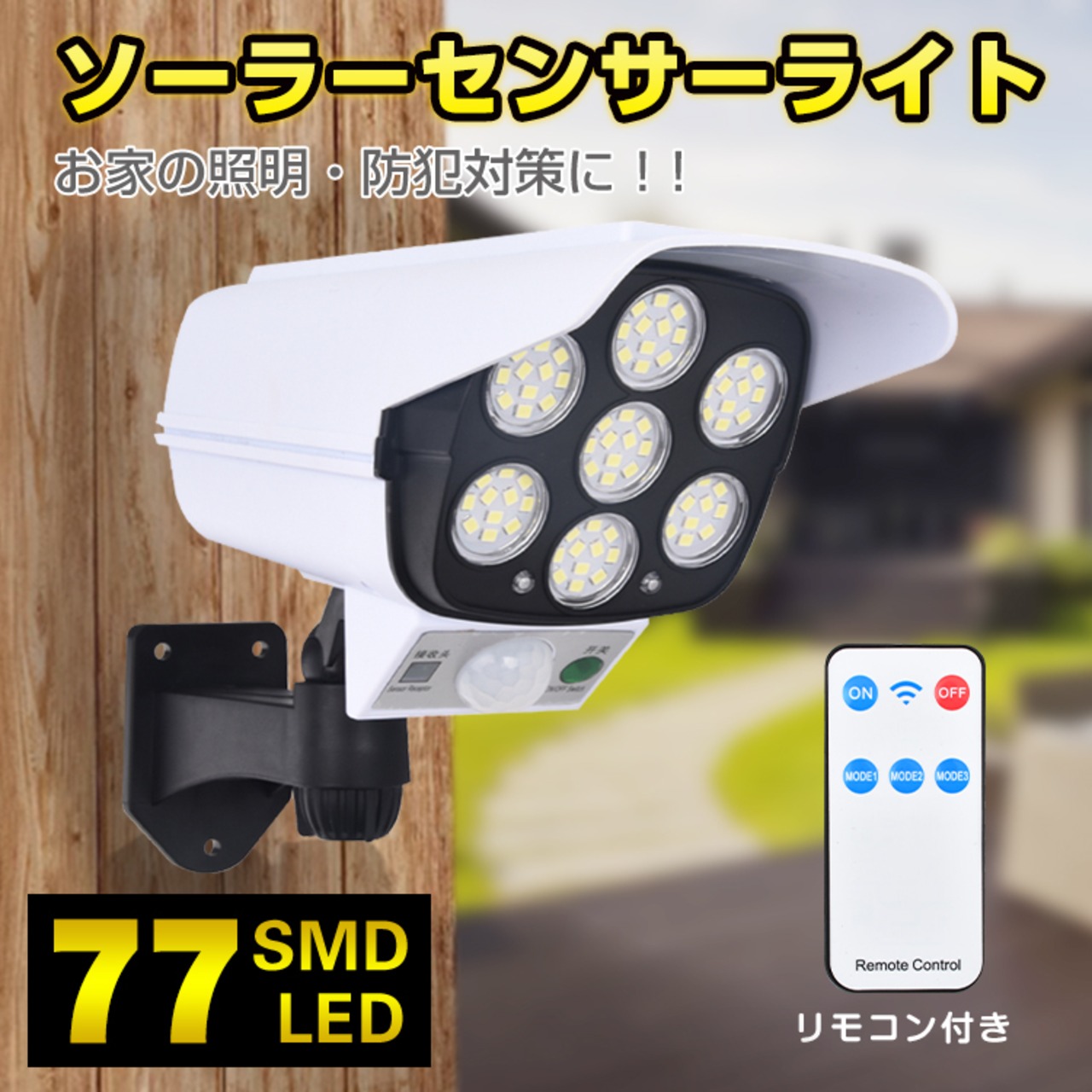 センサーライト 屋外 led ソーラー リモコン付き 77 SMD LED 人感 停電 防犯 自動点灯 太陽光発電