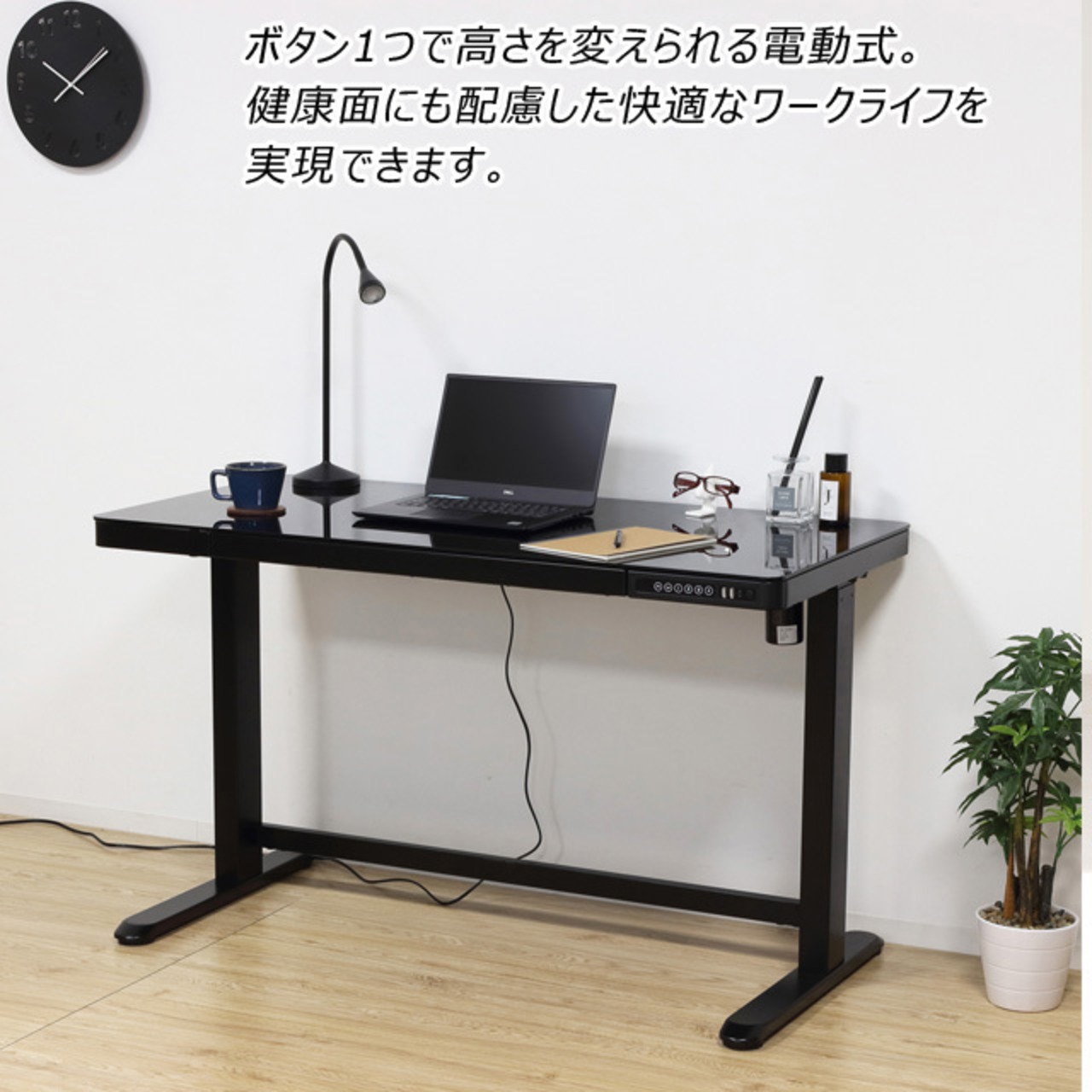 ◆天板表面は強化ガラスでスタイリッシュです。W120×D60cmと大きく、ゆったり使えます。