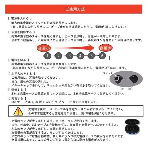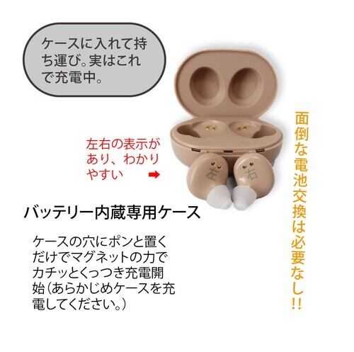 ・充電時間:約2時間(充電ケースのみ)、約3時間(充電ケースと集音器同時)、約90分(充電ケースから集音器へ)