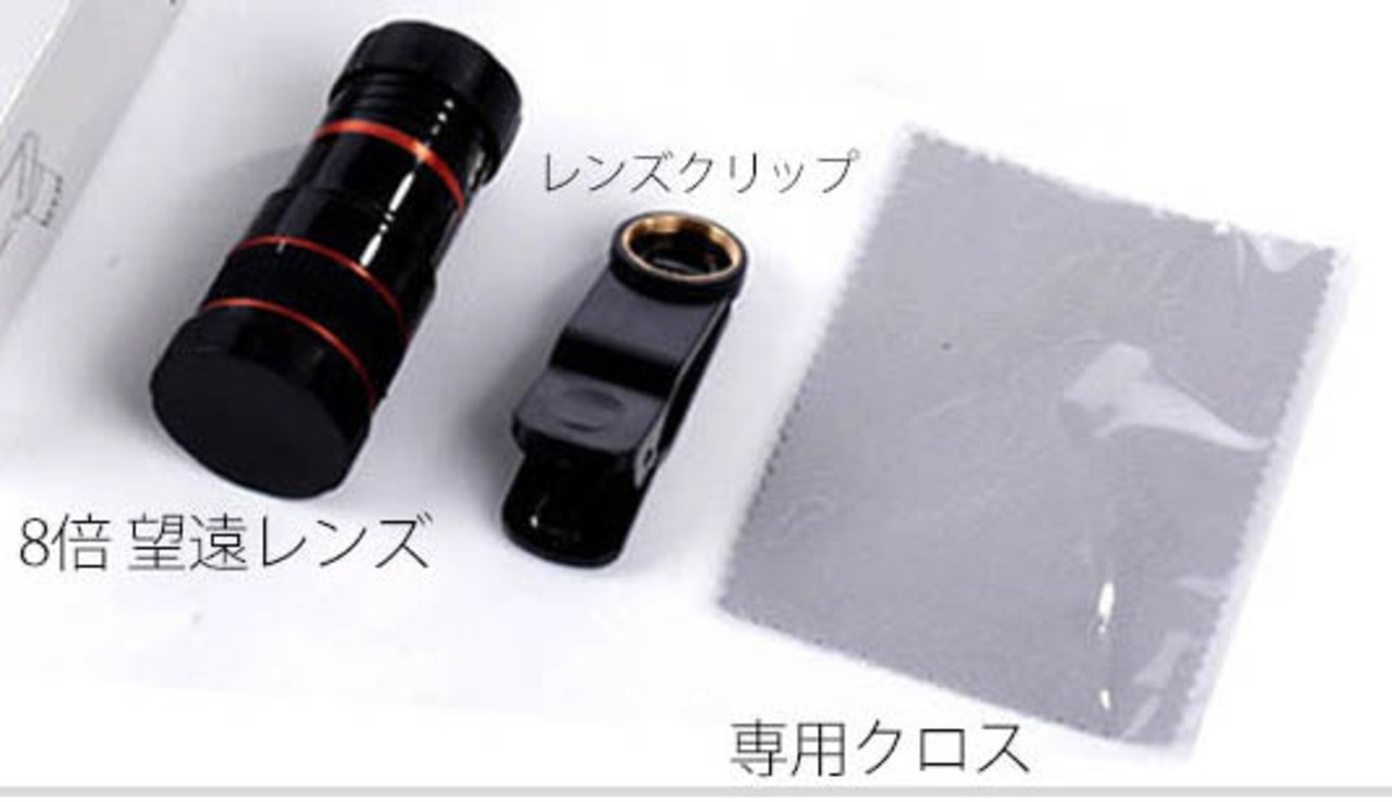 スマホ用望遠レンズ(8倍)スーパーズーム 望遠レンズ 簡単 便利 ワンタッチ脱着 2色/