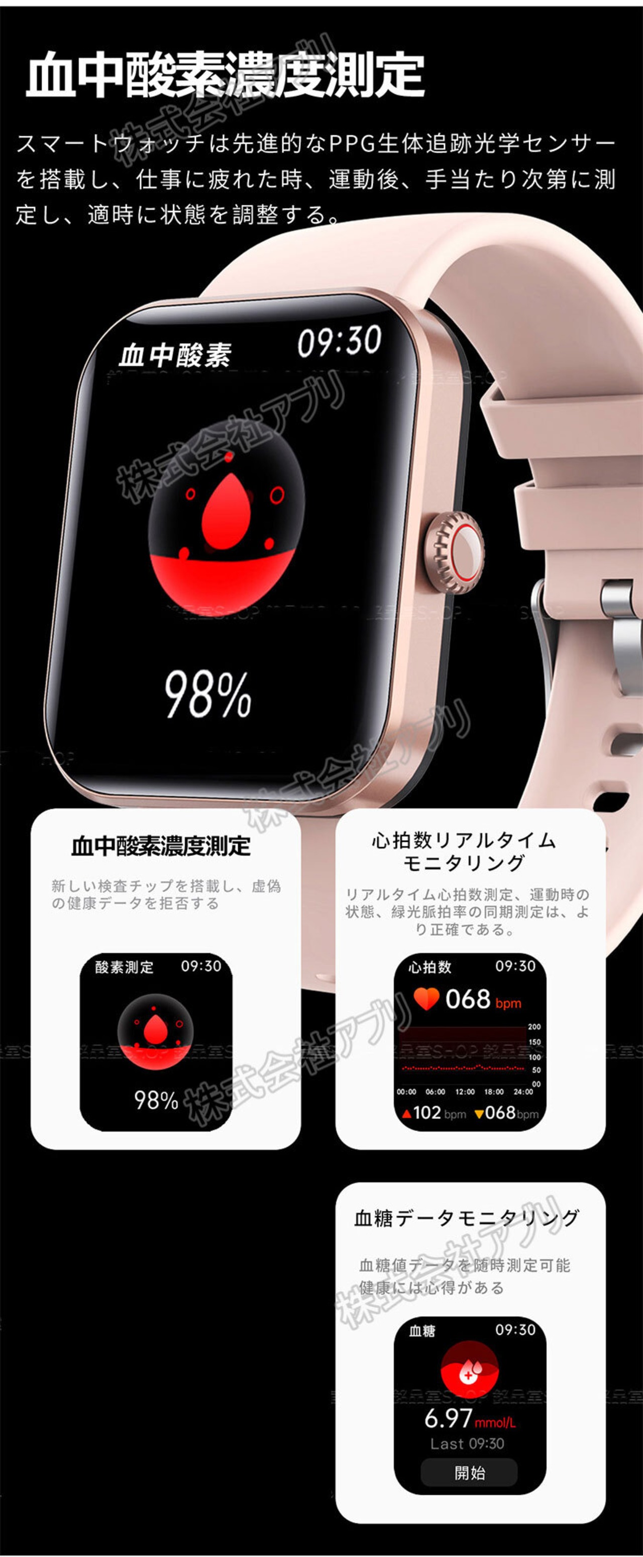 スマートウォッチ 1.91インチ画面 血糖値測定 通話機能 Bluetooth通話 音声通話