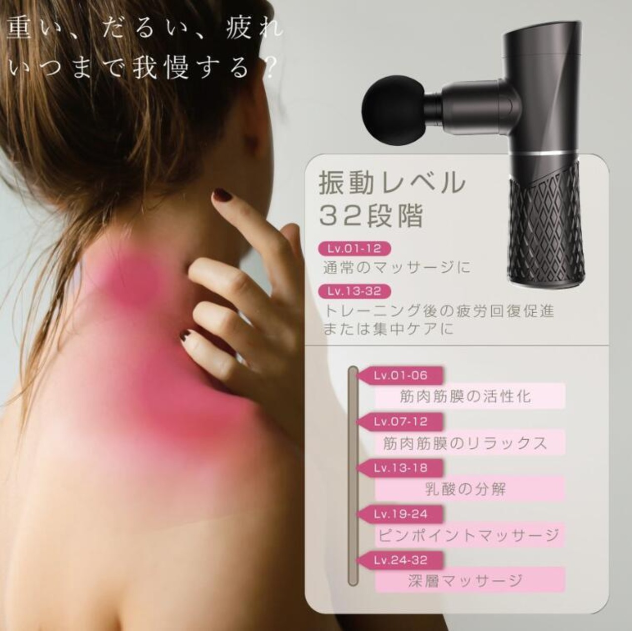 32段階 マッサージ機 マッサージガン筋膜リリース 軽量 筋肉マッサージ器具 ダイエット効果 電動