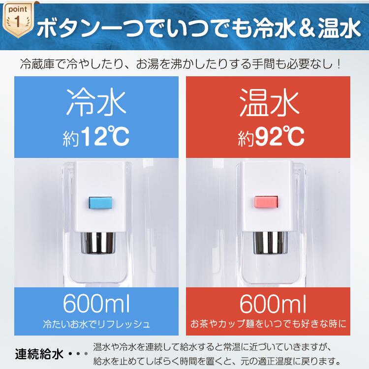 ボタン一つでいつでも手軽に温水と冷水を飲むことができます!