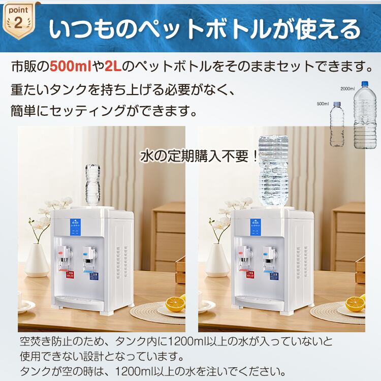 ウォーターサーバー 卓上 卓上型 ペットボトル 2L 500ml 小型 温水 冷水 給湯器